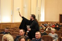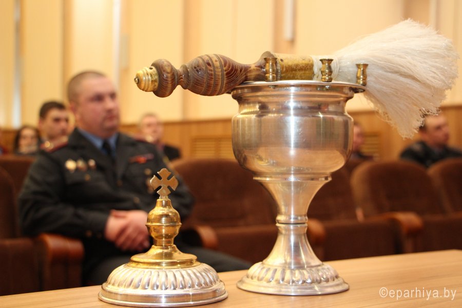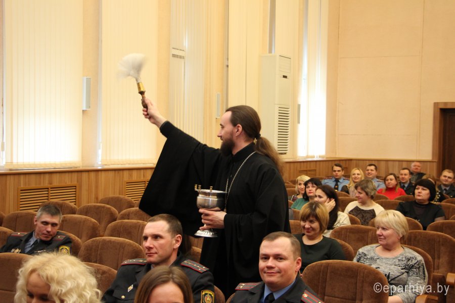 Беседу на тему «Пасха в жизни христианина» в УВД Гомельского областного исполнительного комитета провел клирик храма святого Архангела Михаила в г. Гомеле иерей Станислав Смоляк 27 марта. В ходе встречи священнослужитель призвал всех приобщиться к последним дням Великого поста и достойно встретить Пасху, а также провел чин освящения помещений УВД. |
