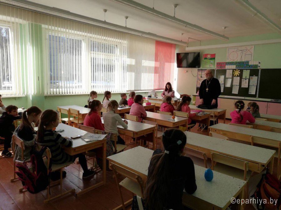 Вот и наступила прекрасная пора для школьников - весенние каникулы. Тот период, когда ни о чем не надо думать, ни о каких домашних заданиях, не надо ходить на уроки в школу, однако некоторые дети все-таки ходят в школу. Так, например, в ГУО "Средняя школа №53 г.Гомеля" традиционно в дни каникул проводится детский лагерь "Солнышко". 26 марта клирик храма прп. Серафима Саровского в г.Гомеле протоиерей Анатолий Федотов посетил одно из занятий школьного лагеря. Многие из ребят уже были знакомы со священнослужителем, кто-то увидел его впервые. С детьми состоялась интересная беседа на тему заповедей Божьих. Также протоиерей Анатолий Федотов рассказал ребятам о том, что такое Пасха и почему этот праздник так важен для всех христиан. В завершении занятия, дети выразили надежду на последующие познавательные встречи и беседы. |