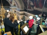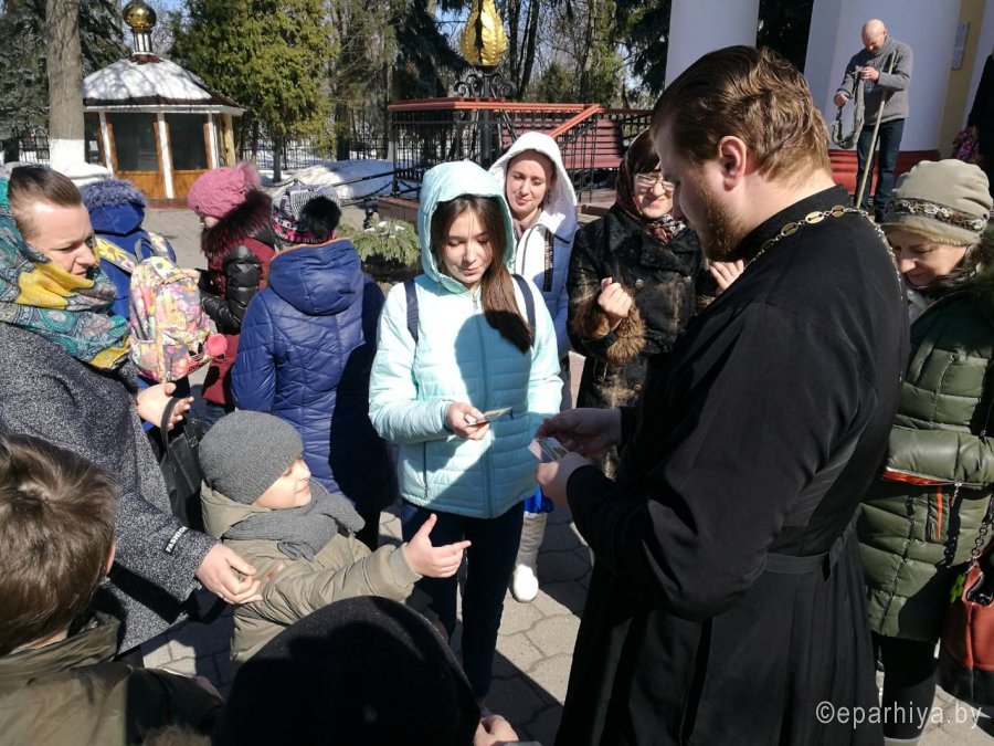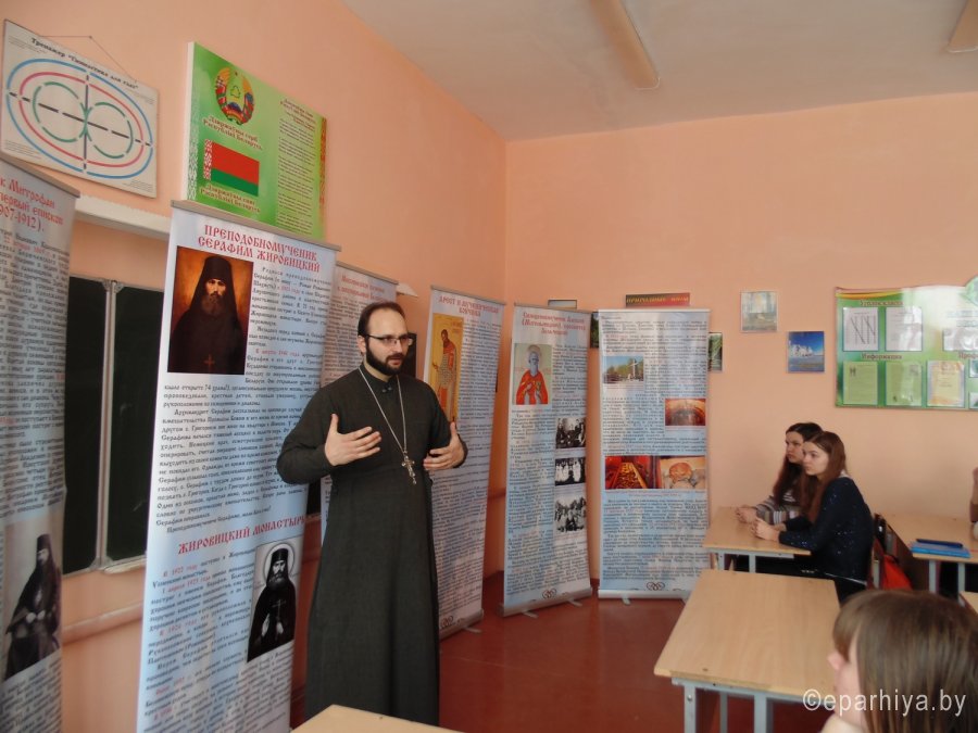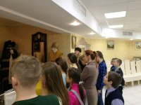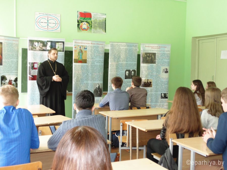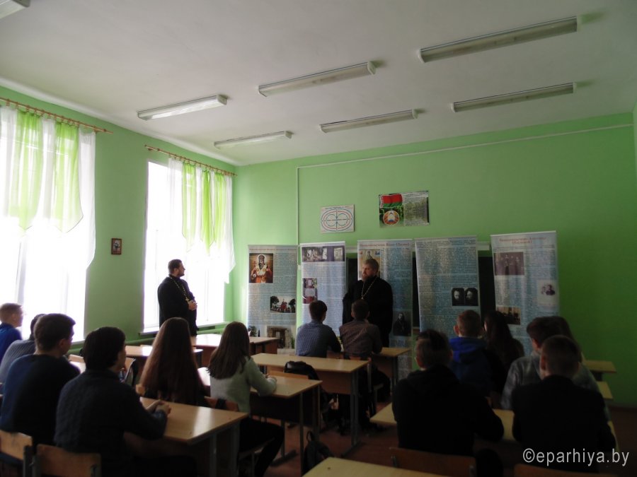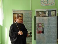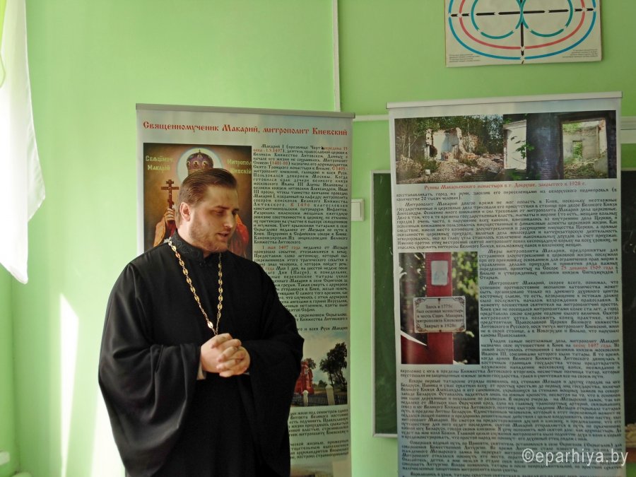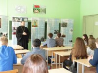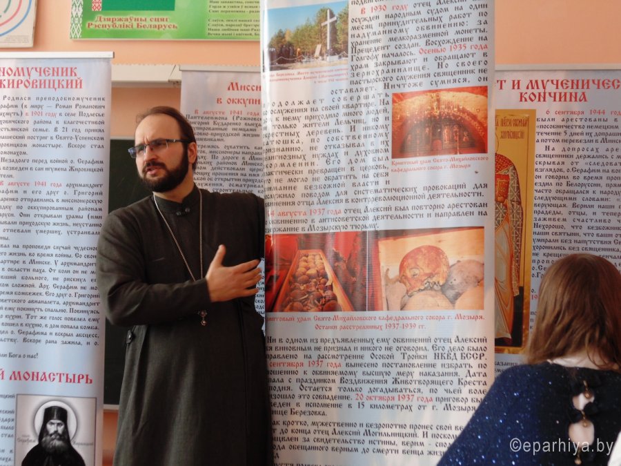 В Добрушском благочинии прошел ряд мероприятий, посвященных знакомству с новейшей историей святости родного края. 20 марта 2018 года в ГУО «СШ №3 г. Добруша» для учащихся 8-11 классов прошла выставка, посвященная подвигу новомучеников и исповедников земли Гомельской под названием «В терпении — спасение». На баннерах были представлены фотографии, иконы, летопись святости нашего края. Выставку провели председатель Комиссии по канонизации святых Гомельской епархии протоиерей Александр Лопушанский и ключарь Свято-Петро-Павловского собора г. Гомеля иерей Алексей Сергеев. Они совершили исторический экскурс по представленной экспозиции, останавливаясь на служении и подвигах святых новомучеников, рассказали старшеклассникам о деятельности священнослужителей в различные исторические периоды (во времена гонений на Церковь, Первой мировой и Великой Отечественной войн), об их вкладе в развитие Гомельской, и что особенно приятно — Добрушской земли. Многим ученикам школы эта тема довольно близка — они принимали участие в Крестном ходе и Божественной Литургии у руин Свято-Макарьевского монастыря в мае 2017 года, совершили незабываемую поездку по храмам г. Гомеля. Ознакомление с историей святости родного края продолжилось 24 марта 2018 года: на экскурсию в Свято-Петро-Павловский собор г. Гомеля отправилась группа школьников 6-9 классов третьей и второй школ города. Вместе с иереем Алексеем Сергеевым ребята познакомились с историей собора, прошлись по залам музея, поклонились святым мощам преподобной Манефы Гомельской. Вдохновителем и одним из главных организаторов проведенных мероприятий стал иерей Алексей Рыкалин — ответственный за молодежную работу в благочинии. |