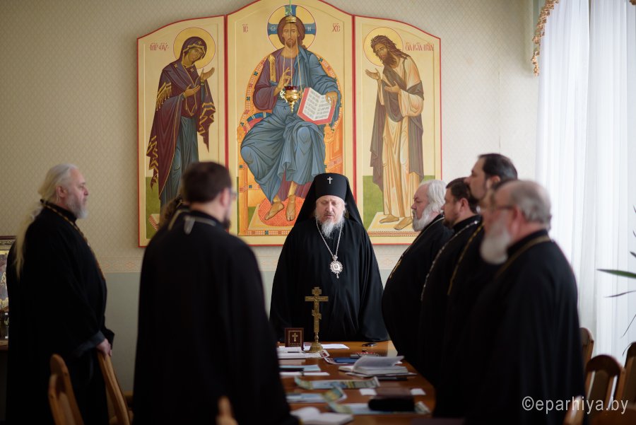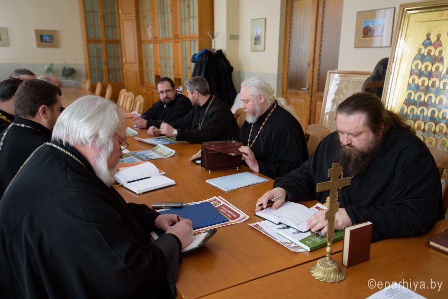 Очередное собрание Епархиального совета Гомельской епархии под председательством Высокопреосвященнейшего Стефана, архиепископа Гомельского и Жлобинского состоялось 30 марта 2018г. в здании Епархиального Управления. Перед началом собрания Епархиальный Совет выразил соболезнования родным и близким пострадавших в трагедии в г.Кемерово и Высокопреосвященнейший Стефан возглавил заупокойную литию. В ходе собрания обсуждались мероприятия, посвященных на канонической территории Белорусской Православной Церкви в 2018 году юбилейным датам Архиерея-воссоединителя митрополита Иосифа (Семашко), мероприятия, посвященные 20-летию со дня канонизации Иоанна Кормянского в лике праведного как местночтимого святого Белорусской Православной Церкви, мероприятия XV Пасхального фестиваля, кадровые и административные вопросы. Также обсуждался план слёта православной молодежи, который состоится в июле текущего года и принесение Жировичской иконы Божией Матери в пределы Гомельской епархии, запланированное на период с 15 по 24 мая 2018г. |