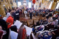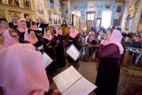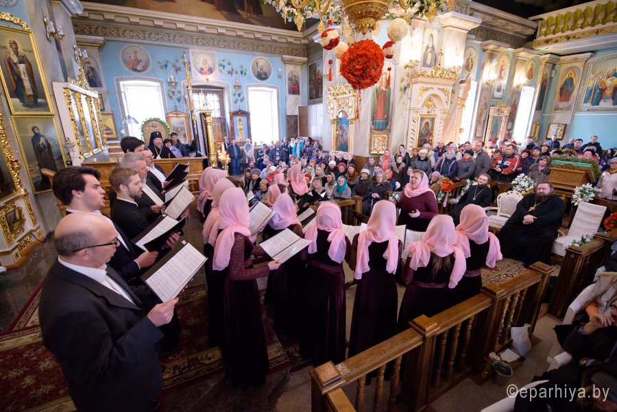 1 апреля 2018г., в праздничный день Входа Господня в Иерусалим в Свято-Петро-Павловском кафедральном соборе г. Гомеля состоялся концерт великопостных песнопений. Насладиться церковными песнопениями всем собравшимся помогли хоровые коллективы храмов и учреждений образования, среди которых были: Архиерейский хор Свято-Петро-Павловского кафедрального собора, Хор храма Рождества Пресвятой Богородицы в а.г. Урицкое, Хор храма св.блг. князя Александра Невского в г.Гомеле, Народная хоровая капелла "Дзянніца" Гомельского государственного университета имени Ф.Скорины, Народный молодёжный камерный хор «Возрождение". Подчеркивали индивидуальность каждой песни пояснительные комментарии архимандрита Саввы(Мажуко). Каждый номер концерта пронизывал до глубины души своей искренностью и теплотой. В заключение концерта Высокопреосвященнейший архиепископ Стефан выразил благодарность участвовавшим коллективам и их руководителям, организаторам концерта и всем пришедшим слушателям. Владыка подчеркнул высокий певческий уровень выступавших хоров и высказал надежду на то, что сохранится данная традиция для Гомельской епархии. В заключении все участники совершили литию по родителям прп.Манефы Гомельской. Именно, в 2018 году исполняется 100 лет со дня ее Рождения. Официальные торжества в Гомельской епархии состоятся 11 августа текущего года. |