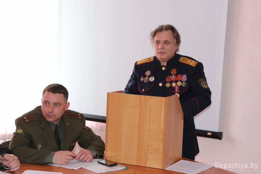 1 апреля 2015г. в здании Государственное учреждение образования "Гомельское городское кадетское училище", в рамках регионального научно-исторического семинара «Влияние Православной Церкви на духовное наследие белорусского народа в примере священномученика Митрофана (Краснопольского)» посвященного 70-летию Великой Победы и 100-летию Первой мировой войны прошло заседание секции «Примеры подвига и героизма белорусского народа в годы военного лихолетья». С приветственным словом к участникам секции обратился заместитель начальника военно-транспортного факультета по идеологической работе подполковник Маруняк Игорь Георгиевич. В работе секции приняли участие курсанты военно-транспортного факультета УО «БелГУТ», кадеты Гомельского городского кадетского училища, представители казачества и духовенство Гомельской Епархии. |
