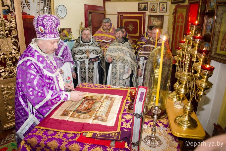 1 апреля 2015г., Преосвященнейший Стефан возглавил Божественную литургию Преждеосвященных Даров в храме Преображения Господня г.Чечерска. Преосвященному сослужили: благочинный Чечерского благочинного округа протоиерей Георгий Шмидов и духовенство благочиния. |