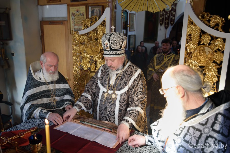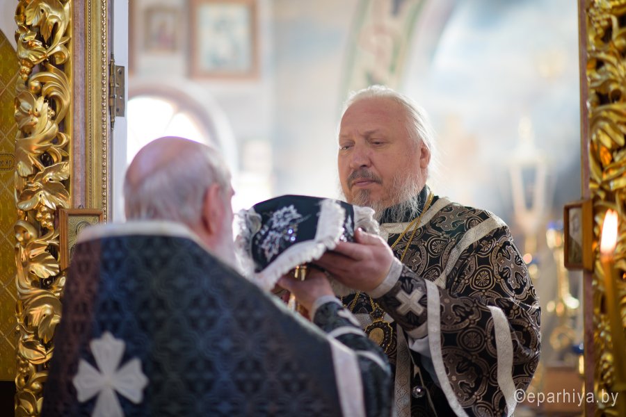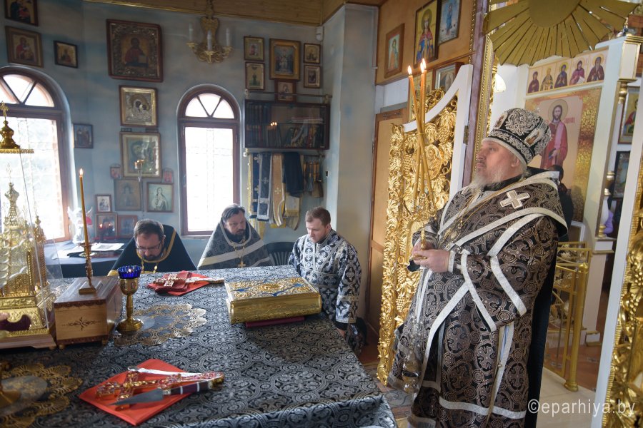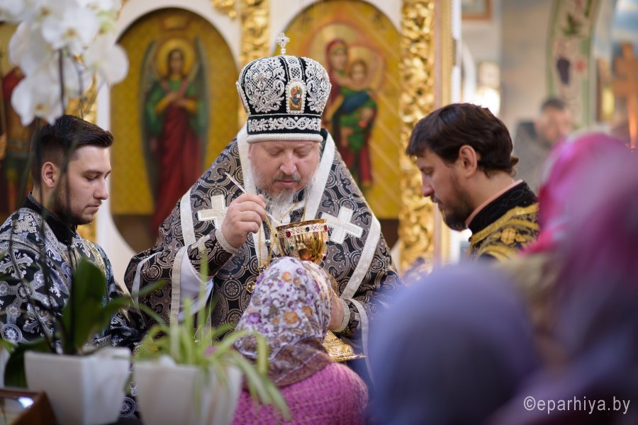 Высокопреосвященнейший Стефан, архиепископ Гомельский и Жлобинский в Великий Вторник совершил Божественную литургию Преждеосвященных Даров в храме святого великомученика Георгия Победоносца в г.Гомеле. Его Высокопреосвященству сослужили: благочинный Гомельского городского округа протоиерей Игорь Ольшанов, духовник Гомельской епархии протоиерей Стефан Гладыщук, настоятель прихода протоиерей Дмитрий Гончаров и духовенство храма. По окончании богослужения Владыка поздравил причастников с принятием Святых Христовых Таин, пообщался с прихожанами и в память об этом дне раздал всем иконки. |