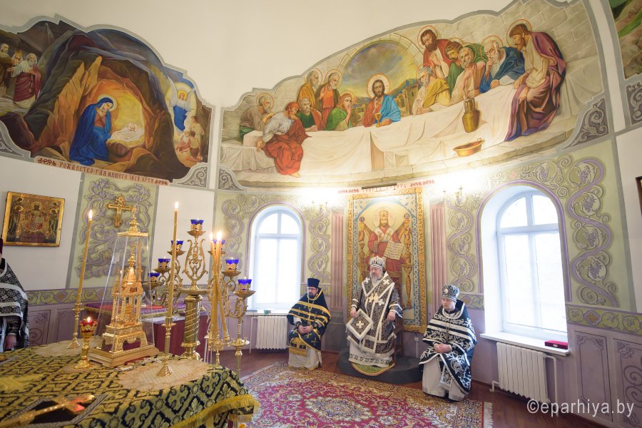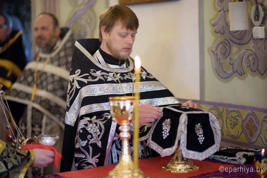 Божественную литургию Преждеосвященных Даров в Великую Среду, Высокопреосвященнейший Стефан, архиепископ Гомельский и Жлобинский совершил в Свято-Иоанно-Кормянском женском монастыре аг.Корма. Высокопреосвященнешему сослужили: секретарь Гомельской епархии протоиерей Георгий Алампиев, благочинный Гомельского городского округа протоиерей Игорь Ольшанов, настоятель прихода иерей Дмитрий Жданов и духовенство храма. По окончании богослужения Владыка поздравил причастников с принятием Святых Христовых Таин и обратился к духовенству и прихожанам со словами Архипастырского назидания. |