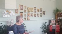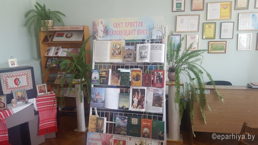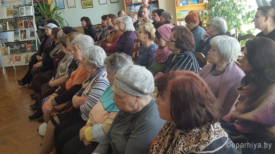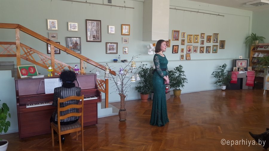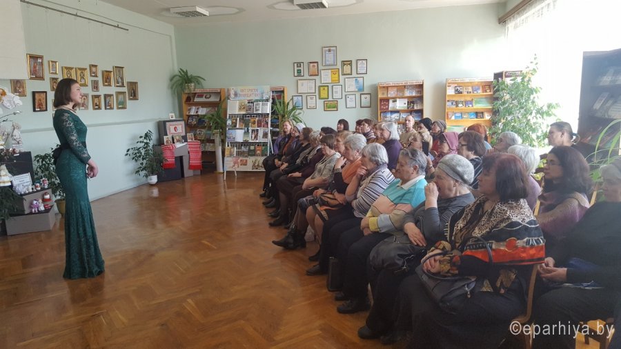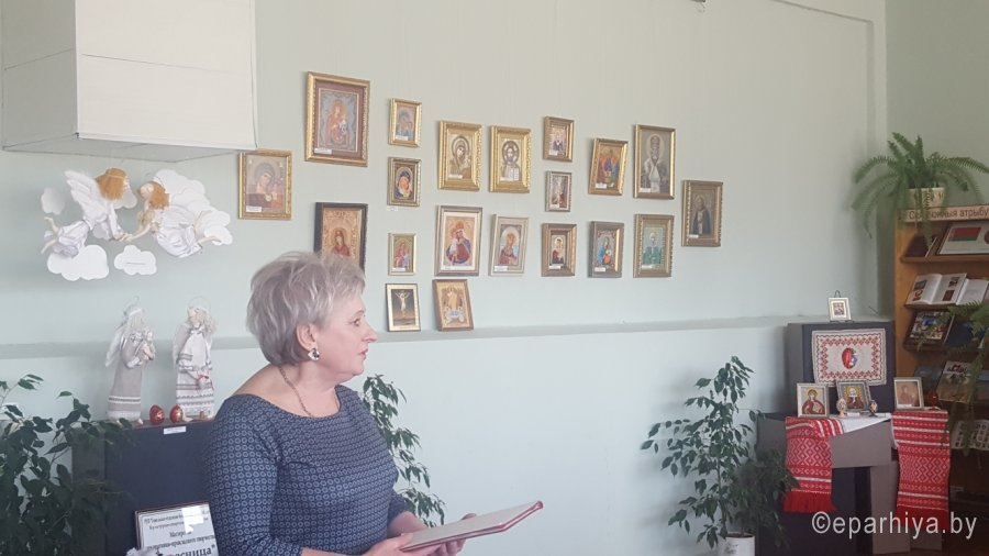 Тематическое Пасхальное мероприятие состоялось в библиотеке-филиале №8 им. Кирилла Туровского. К открытию в библиотеке была организована выставка икон, вышитых бисером мастерицами мастерской декоративно-прикладного творчества «Кудесница». Оформлена книжная выставка «Свет Христов просвещает всех». Заведующая Уварова Антонина Васильевна выступила с приветственным словом к своим читателям, всем присутствующим в зале. Открыл мероприятие церковный хор храма Рождества Богородицы г.п. Урицкое. Затем слово было предоставлено настоятелю прихода храма Скитовской иконы Божией Матери г. Гомеля иерею Дмитрию Загоруеву, который рассказал о Страстной неделе. После выступления священнослужителя прозвучала «Аве Мария», в исполнении преподавателя колледжа искусств им. Соколовского Дарьи Трубской и концертмейстера Виктории Карташовой. Это стало началом представления работ мастерской «Кудесница» её руководителем Палто Еленой Васильевной. Иерей Дмитрий Загоруев освятил иконы и окропил святой водой всех присутствующих. Эта выставка продлится до 22 апреля. |