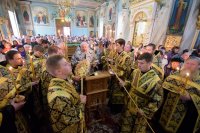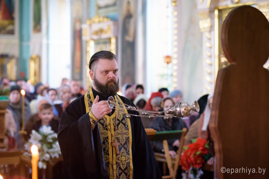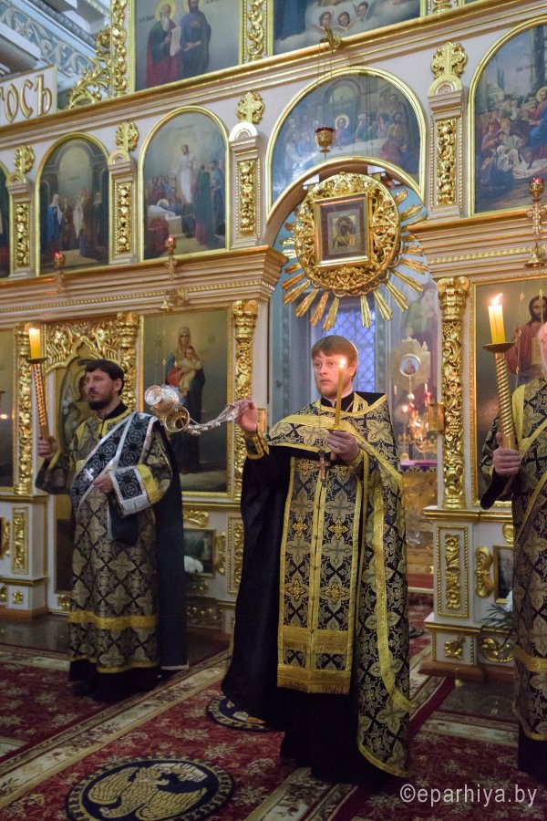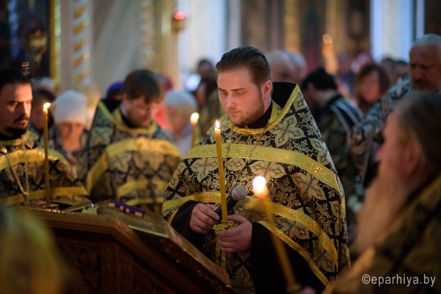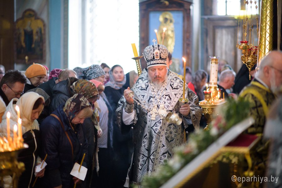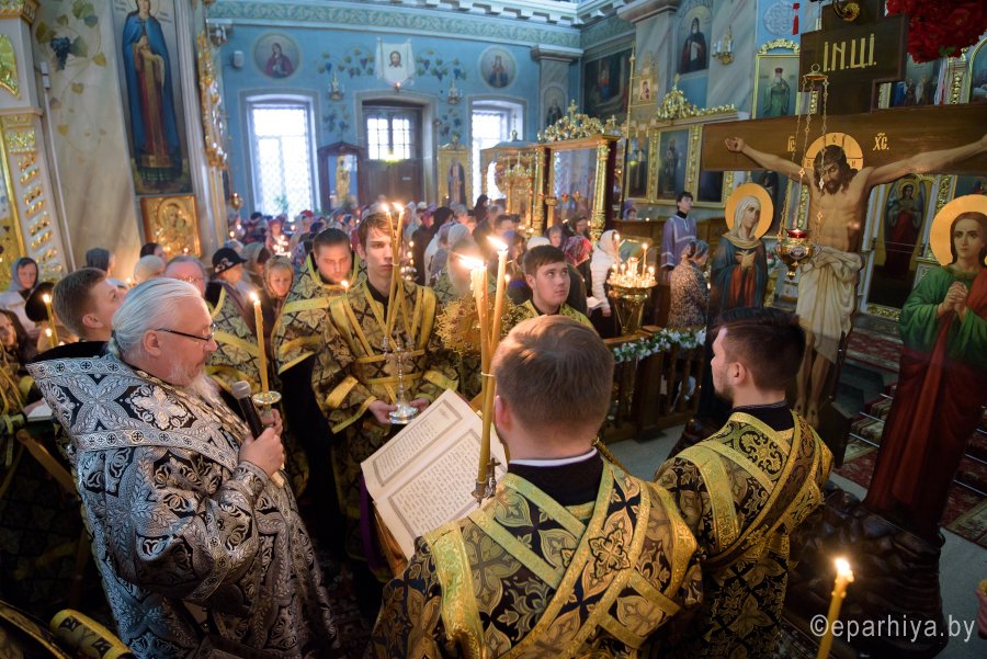 Вечером 5 апреля Высокопреосвященнейший Стефан, архиепископ Гомельский и Жлобинский совершил утреню Великого пятка с чтением 12-и Евангелий Святых Страстей Господа нашего Иисуса Христа в Свято-Петро-Павловском кафедральном соборе г.Гомеля. Высокопреосвященнейшему сослужили: секретарь Гомельской епархии протоиерей Георгий Алампиев и духовенство собора. По окончании богослужения Владыка обратился к молящимся со словами Архипастырского назидания. |