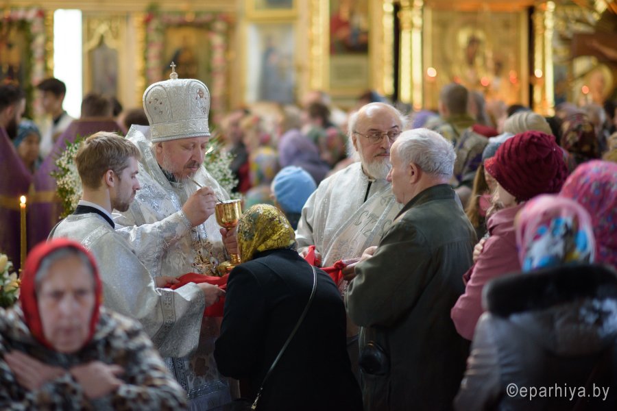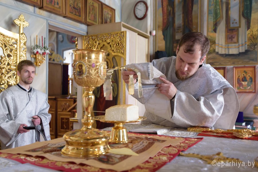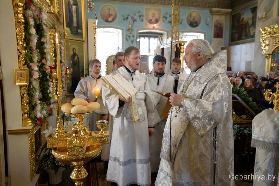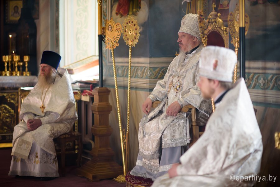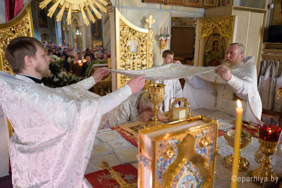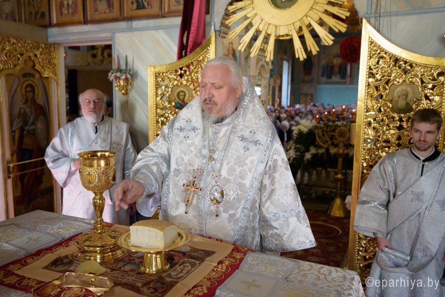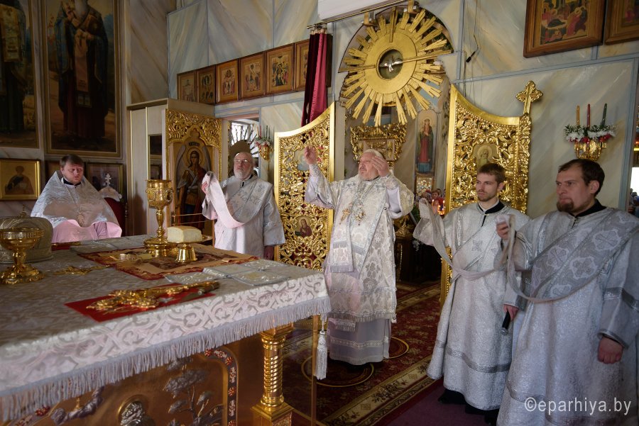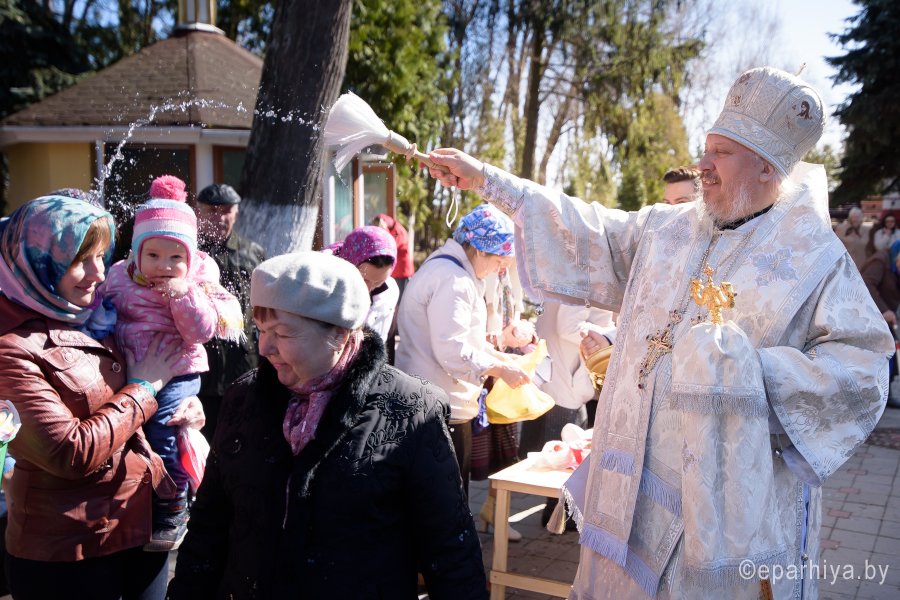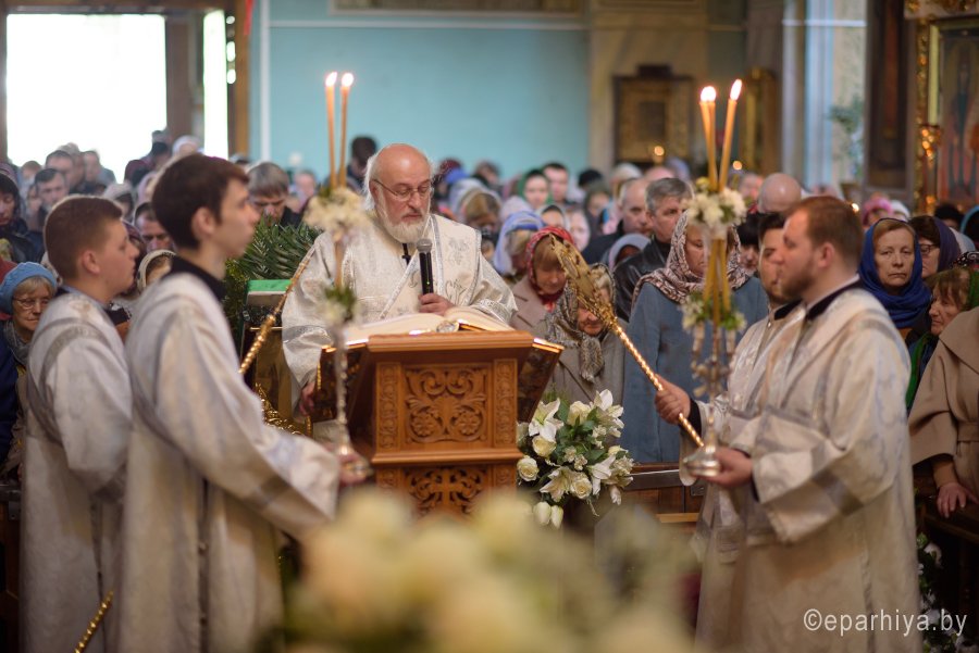 Высокопреосвященнейший Стефан, архиепископ Гомельский и Жлобинский совершил уставные богослужения Великой Субботы и праздника Благовещения Пресвятой Богородицы в соборе святых первоверховных апостолов Петра и Павла 7 апреля 2018г. Высокопреосвященному сослужили: секретарь Гомельской епархии протоиерей Георгий Алампиев и духовенство собора. По окончании богослужения Владыка вознес молитву о мире на Святой Земле, поздравил причастников с принятием Святых Христовых Таин, обратился к молящимся со словами Архипастырского назидания и освятил куличи. |