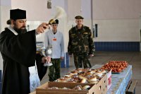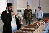 В преддверии великого праздника Воскресения Христова 7 апреля 2018 г. клирик храма святого Архангела Михаила в г.Гомеле иерей Максим Новик совершил чин освящения пасхальных куличей и яиц в в/ч 5525 г.Гомеля и поздравил всех с наступающим праздником. |