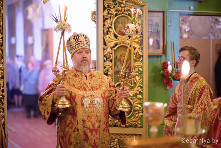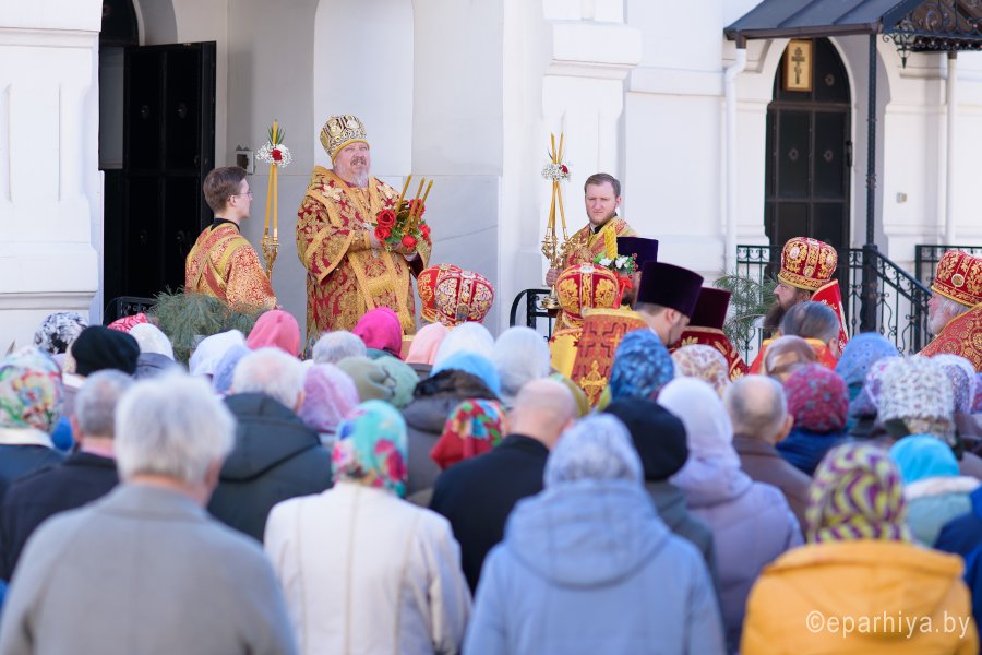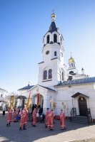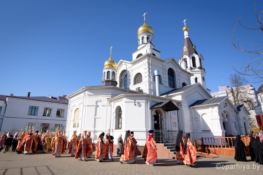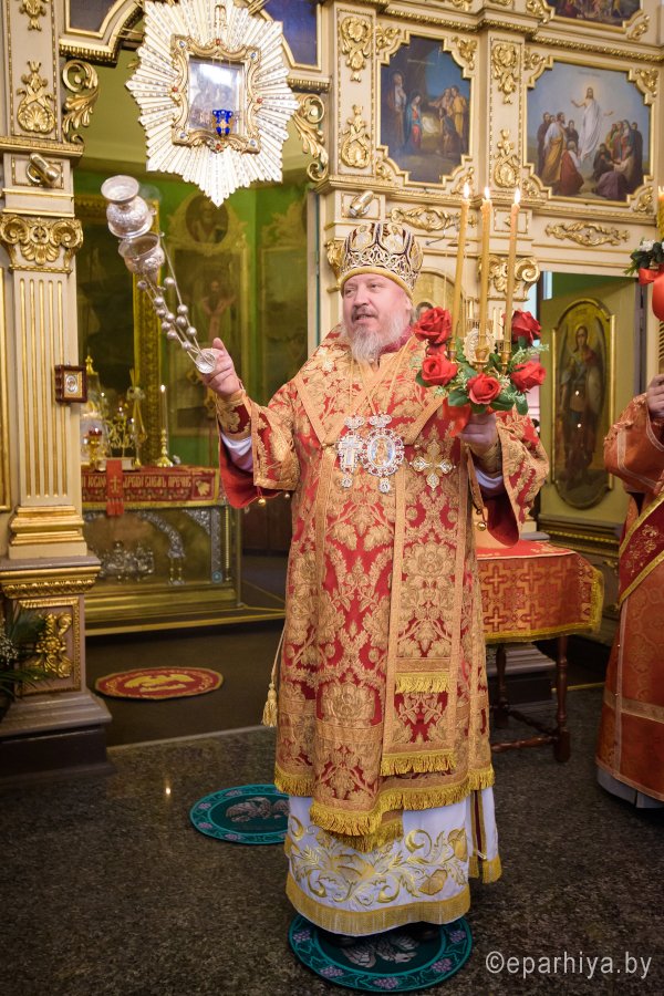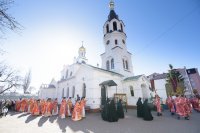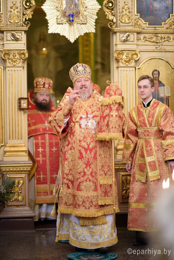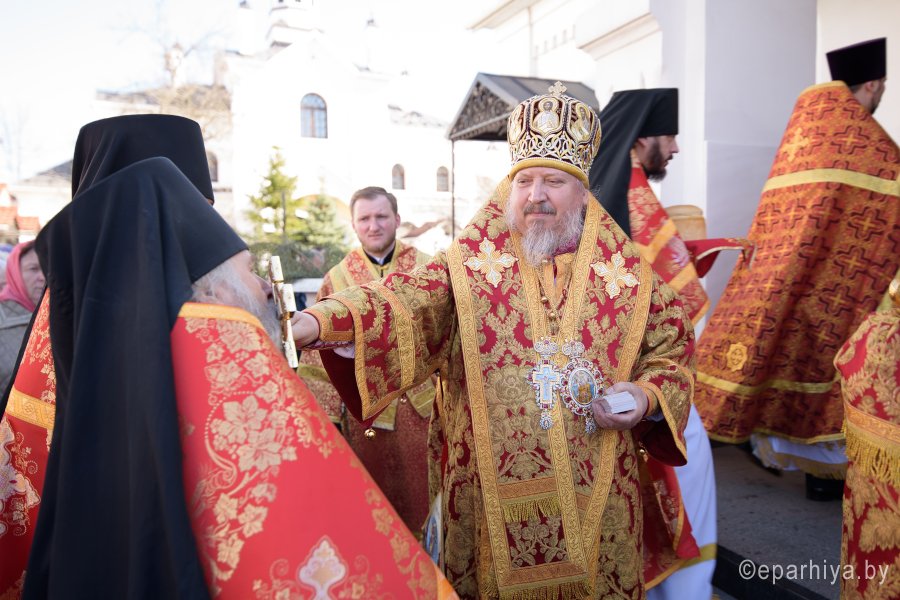 Божественную литургию в понедельник Светлой седмицы, 9 апреля 2018 г., Высокопреосвященнейший Стефан архиепископ Гомельский и Жлобинский совершил в Свято-Никольском мужском монастыре в г.Гомеле. Высокопреосвященному сослужили: секретарь Гомельской епархии протоиерей Георгий Алампиев, благочинный монастырей Гомельской епархии архимандрит Амвросий (Шевцов), духовник Гомельской епархии протоиерей Стефан Гладыщук, Председатель отдела по архитектуре и строительству протоиерей Георгий Тур, Председатель Информационного отдела Гомельской епархии протоиерей Олег Кострома, благочинный районного округа протоиерей Артемий Кривицкий, благочинный Гомельского городского округа протоиерей Игорь Ольшанов и духовенство епархии. На малом входе игумен Антипа (Непокойчицкий) был удостоен правом служения Божественной литургии с открытыми Царскими Вратами до Херувимской песни. В завершении литургии Высокопреосвященнейший Стефан возглавил Крестный ход с чтением Евангелия. По окончании Крестного хода Владыка поздравил присутствующих со Светлым праздником Воскресения Господня, обратился со словами Архипастырского назидания и в память об этом дне раздал всем иконки. |