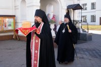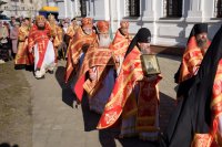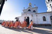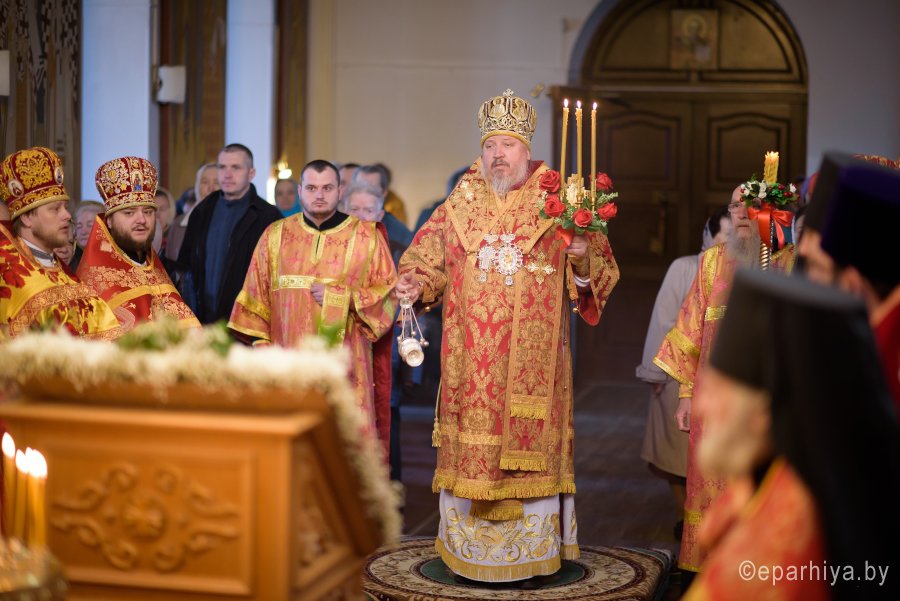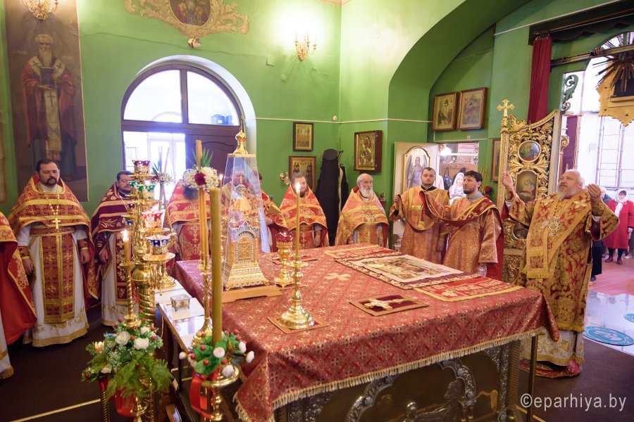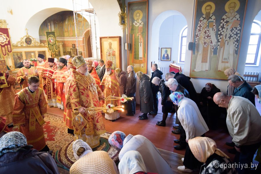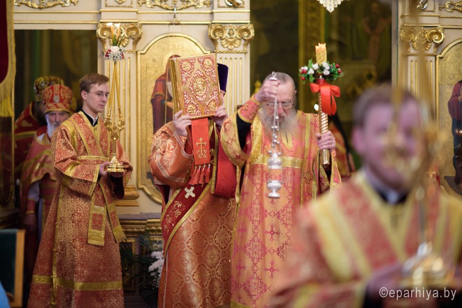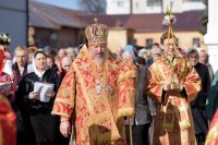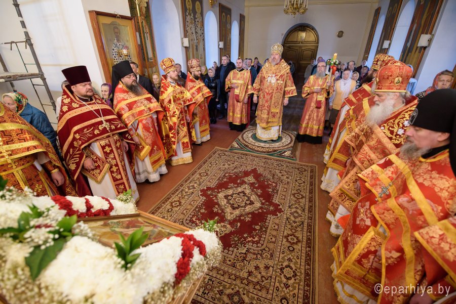 Божественную литургию в понедельник Светлой седмицы, 9 апреля 2018 г., Высокопреосвященнейший Стефан архиепископ Гомельский и Жлобинский совершил в Свято-Никольском мужском монастыре в г.Гомеле. Высокопреосвященному сослужили: секретарь Гомельской епархии протоиерей Георгий Алампиев, благочинный монастырей Гомельской епархии архимандрит Амвросий (Шевцов), духовник Гомельской епархии протоиерей Стефан Гладыщук, Председатель отдела по архитектуре и строительству протоиерей Георгий Тур, Председатель Информационного отдела Гомельской епархии протоиерей Олег Кострома, благочинный районного округа протоиерей Артемий Кривицкий, благочинный Гомельского городского округа протоиерей Игорь Ольшанов и духовенство епархии. На малом входе игумен Антипа (Непокойчицкий) был удостоен правом служения Божественной литургии с открытыми Царскими Вратами до Херувимской песни. В завершении литургии Высокопреосвященнейший Стефан возглавил Крестный ход с чтением Евангелия. По окончании Крестного хода Владыка поздравил присутствующих со Светлым праздником Воскресения Господня, обратился со словами Архипастырского назидания и в память об этом дне раздал всем иконки. |
