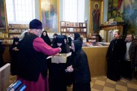 В Светлый Понедельник Высокопреосвященнейший Стефан совершил рабочую поездку в Свято-Иоанно-Кормянский женский монастырь, где поздравил сестер обители со Светлым Христовым Воскресеньем. Также Владыка посетил Огородне-Гомельскую больницу сестринского ухода, где с праздничной концертной программой выступил хор Свято-Никольского мужского монастыря г.Гомеля. По окончании концертной программы Владыка передал для пациентов учреждения здравоохранения сладкие подарки и средства личной гигиены. |