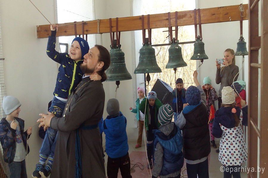 Открытие Пасхального фестиваля состоялось 10 апреля 2018 г. в актовом зале ГУО «Средняя школа № 4 им. В. Маркелова г.Гомеля» Почетными гостями фестиваля стали: клирик прихода храма св. блгв. кн. Александра Невского в г. Гомеле иерей Виталий Партий, начальник отдела образования спорта и туризма администрации Новобелицкого района г. Гомеля Елена Викторовна Ковалева, главный специалист отдела Виктория Юрьевна Дуборезова. С приветственным словом к присутствующим обратился клирик прихода храма св. бл. кн. Александра Невского в г. Гомеле иерей Виталий Партий. Священник сердечно поздравил присутствующих с праздником Светлого Христова Воскресения, а также пожелал всем собравшимся здоровья, мира, добра, радости и всех благ на многая лета. Продолжили мероприятие вокальные и хореографические коллективы из разных школ Новобелицкого района. Ребята талантливо исполняли песни, танцевали и очень уверенно держались на сцене. Праздничная программа отличалась большим разнообразием номеров и прекрасными выступлениями юных исполнителей. По завершении концертной программы зрители одарили молодых артистов горячими аплодисментами. Юные звонари из ГУО «Ясли – сад № 38 г. Гомеля» посетили храм св.блг.кн. Александра Невского в г. Гомеле. После увлекательной экскурсии, которую провел клирик прихода храма иерей Виталий Партий, ребята поднялись на колокольню. Здесь священник рассказал гостям о традициях колокольного звона и колоколах храма, как отличается колокольный звон в разные дни, после чего ребята попробовали себя в роли звонарей. Незабываемое впечатление осталось не только у детей, но и у взрослых. По окончании экскурсии дошколят угостили пасхальными яйцами. Священник еще раз поздравил ребят с праздником Светлой Пасхи и пожелал им добра и радости. |