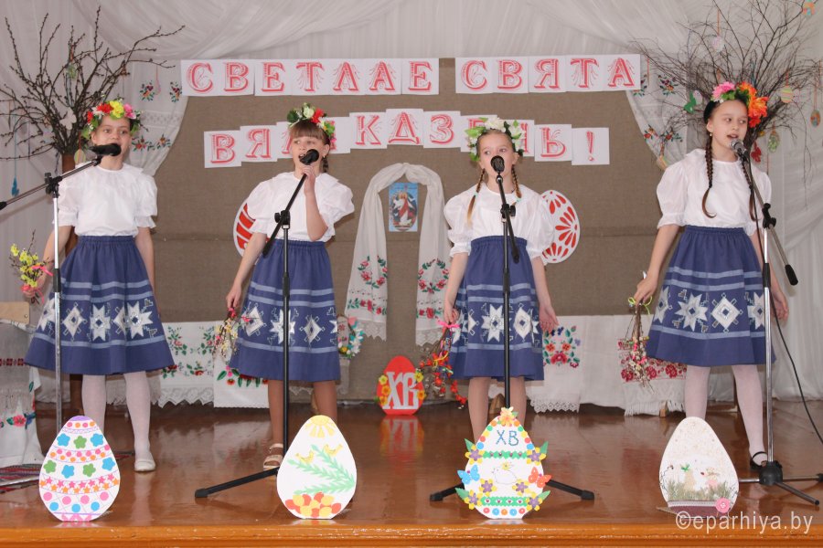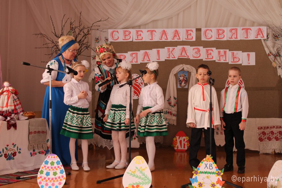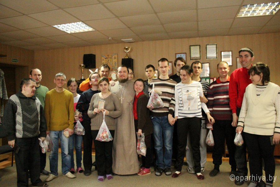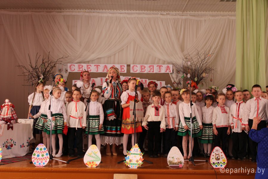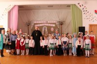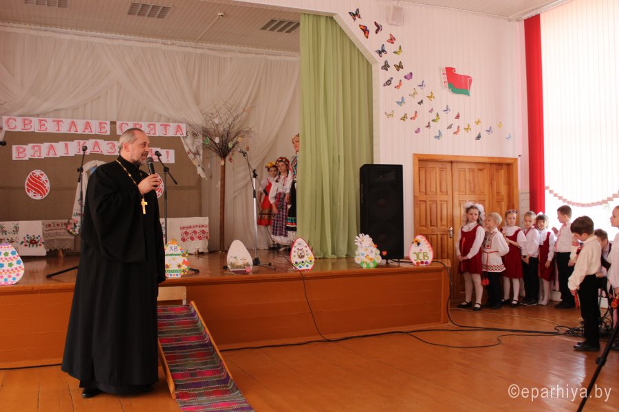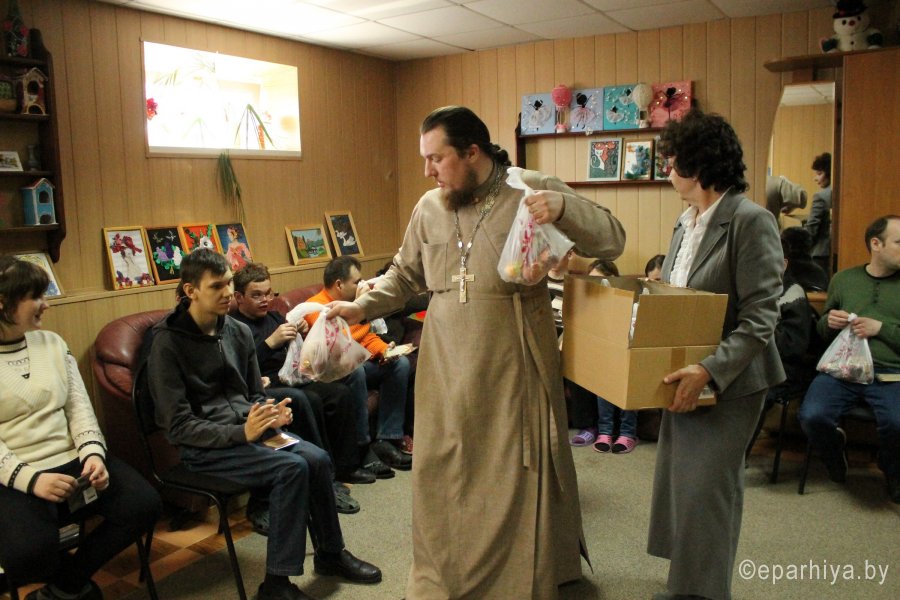 12 апреля в Жлобинском благочинном округе в ГУО "Гимназия №8" в рамках Пасхального фестиваля прошёл праздник под названием "Светлае Свята Вялiк дзень". Настоятель прихода храма святого преподобного Серафима Саровского протоиерей Леонид Михайловский поздравил преподавателей, родителей и учащихся с радостным праздником Воскресения Христова. Педагогический коллектив гимназии с большим энтузиазмом и ответственностью подошли к организации и проведению праздника. Были использованы народные песни, инструменты, белорусские традиции, а национальные костюмы добавили колорита. Особенно важным этот праздник оказался для первоклассников. Под руководством классного руководителя Коваленко Елены Ивановны дети прекрасно справились со своими выступлениями и не скрывали радости. Особенно им понравилась народная игра "Катание яиц". В празднике принимали участие творческий коллектив из деревни Луки Жлобинского района. После окончания праздника все зрители и гости уходили с улыбкой на лице и благодарили за подаренный праздник. В Светлый понедельник настоятель храма святителя Василия Великого в г. Жлобине иерей Вячеслав Рябица с сестрой милосердия из приходского сестричества посетили отделение дневного пребывания инвалидов при «Территориальном центре обслуживания населения» Жлобинского района. С поздравлениями со светлой Пасхой обратился священник к молодым людям и рассказал им об истории традиции дарить крашеные яйца на Пасху. Ребята всегда рады очередной встрече, некоторые из них молились в Пасхальную ночь в храме. Сестры милосердия подготовили своим подопечным пасхальные сладкие подарки, священник вручил их, благословил всех иконами и пригласил ребят на приходской Пасхальный концерт. |