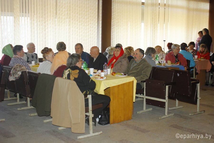 Благотворительная акция для неработающих инвалидов по зрению прошла в общественном объединении «Белорусское товарищество инвалидов по зрению» 10 апреля 2018 года на Пасхальной седмице. Для них был организован праздничный концерт и сладкий стол. Председатель социального отдела Гомельской епархии протоиерей Владимир Силенко поздравил всех присутствующих с праздником Святой Пасхи. Народный хор «Верасень» дома культуры «Новобелицкий» и хор храма святого благоверного князя Александра Невского выступили с концертной программой перед гостями. |