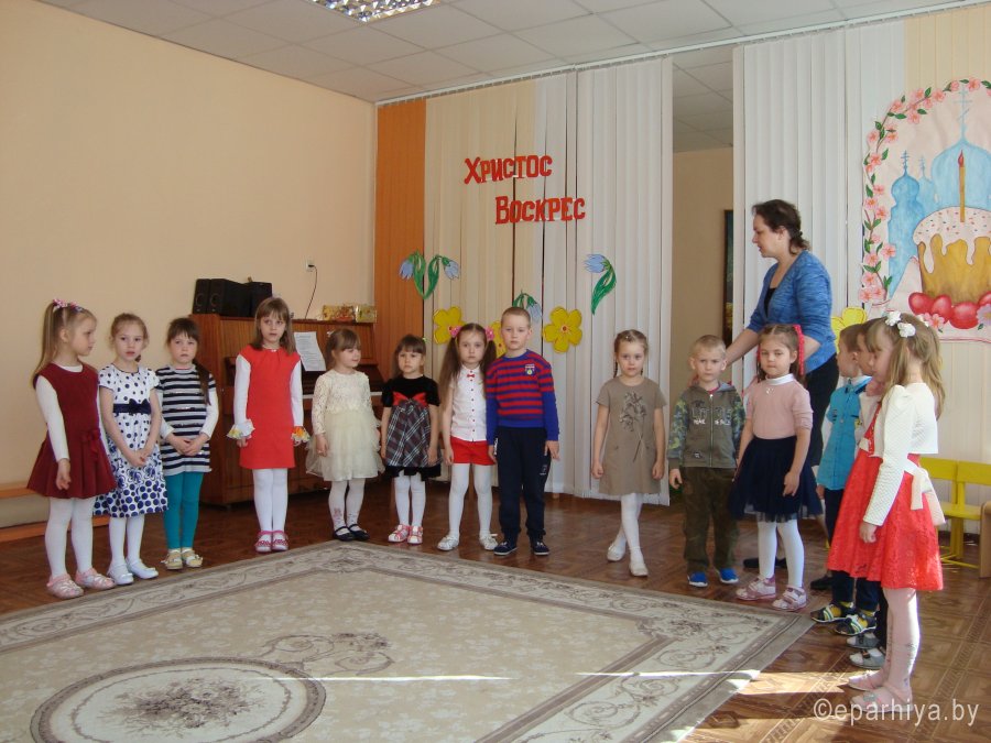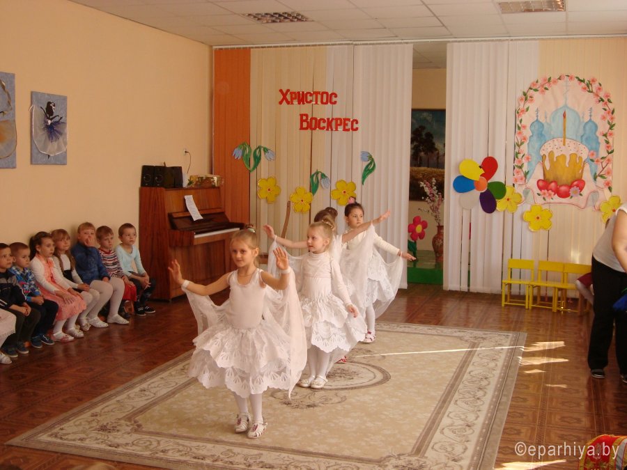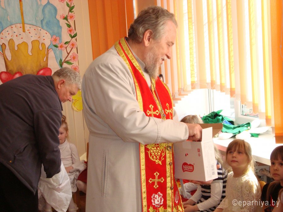 10 апреля в д. Сивенка, находящейся в зоне отселения Ветковского района, были проведены работы по наведению порядка на мемориальном кладбище советских воинов ВОВ. В уборке приняли участие прихожане и духовенство храма Преображения Господня в г. Ветке (всего 5 человек) во главе с настоятелем Прихода - протоиереем Михаилом Борисёнком. По завершении уборки, по погибшим воинам был совершён чин литии. Праздничный утренник, посвящённый Светлому Христову Воскресению, на который были приглашены священнослужители и прихожане храма Преображения Господня в г.Ветка состоялся 10 апреля в ГУО «Ясли-сад №3 г.Ветка». Воспитанники детского сада представили гостям пасхальную концертную программу. Малыши пели песни, рассказывали стихи, танцевали и отгадывали загадки. По окончании концерта, настоятель прихода протоиерей Михаил Борисёнок поблагодарил детей за выступление и рассказал о событии Воскресения Христова. В завершение праздника, воспитателям и всем детям вручили небольшие сладкие подарки и листовки для родителей о значении праздника Пасхи. Участники концерта дополнительно получили призы - разукрашенные деревянные яйца. |
