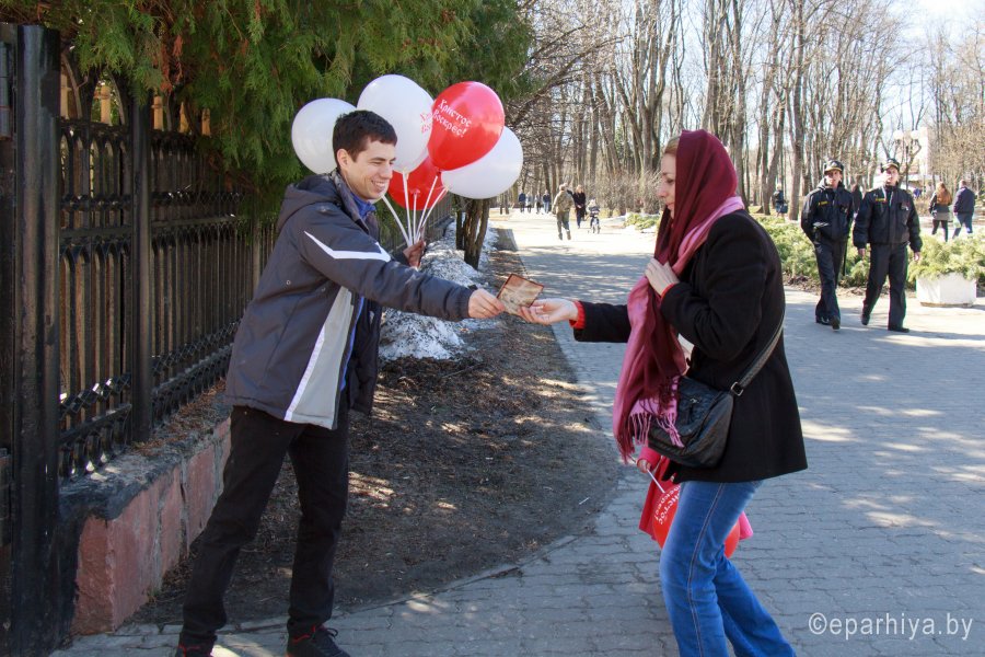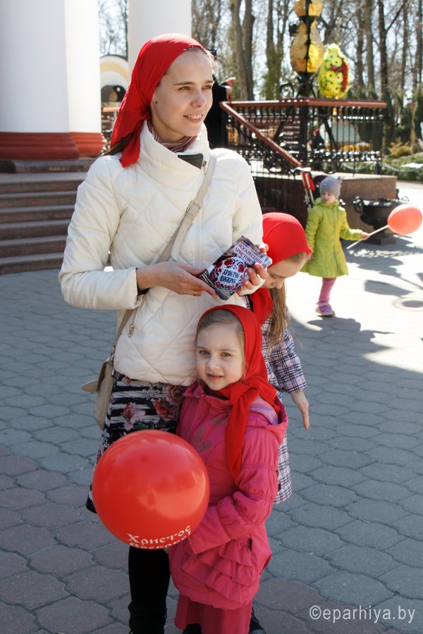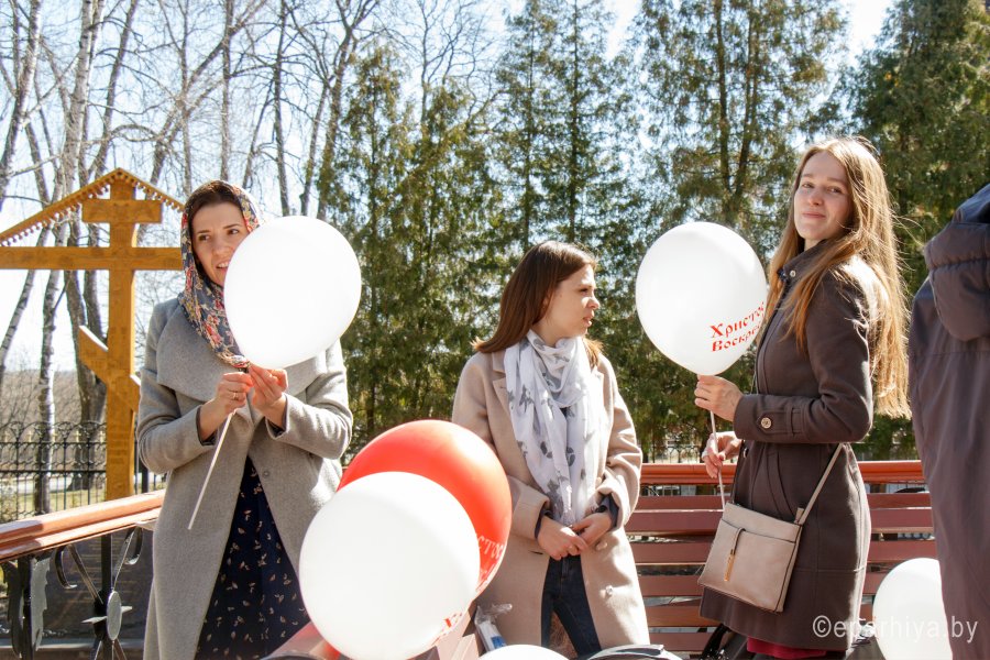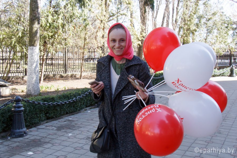 В день Светлого Христова Воскресения по благословению Высокопреосвященнейшего Стефана архиепископа Гомельского и Жлобинского, молодежь собора святых апостолов Петра и Павла организовала поздравление прихожан с Великим Праздником Пасхи. Дети получили шарики с пасхальным приветствием «Христос Воскрес!», а их родители красочные листовки, в которых утверждалась главная христианская истина: «Смерти больше нет! А значит, мы все, так же как и Христос, воскреснем в последний день». |
