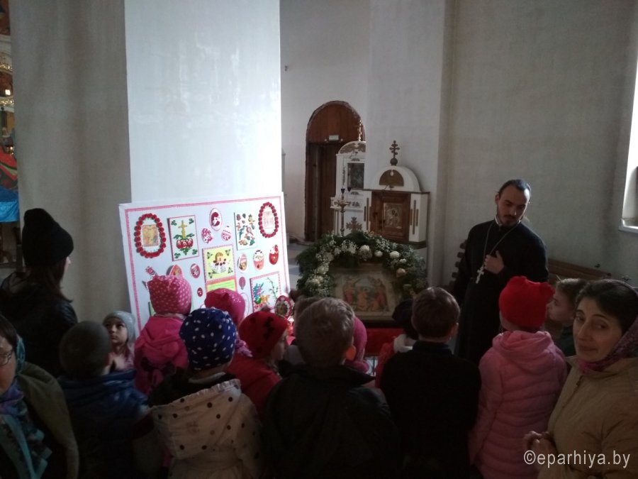 8 апреля в Светлый праздник Воскресения Христово молодежная группа прихода храма Рождества Пресвятой Богородицы,аг. Урицкое, совместно с настоятелем прихода протоиереем Артемием Кривицким с поздравлениями посетили исправительное учреждение открытого типа №22 в д. Залипье. Всех присутствующих ждал небольшой концерт, который помог всем окунуться в праздничную атмосферу. В конце мероприятия каждый смог побеседовать со священником и получить приятные подарки. 10 апреля в храме Рождества Пресвятой Богородицы, аг.Урицкое состоялась встреча иерея Владислава Астаповича с воспитанниками отделения дневного пребывания для инвалидов в аг.Урицкое. В этот день ребята смогли не только услышать много интересного о празднике, узнать его традиции, прикоснуться к святыни, но и получить приятные подарочки. "Каждый раз, когда дети приходят в храм, они как бы заставляют задуматься о жизни, о нашем будущем, и, конечно же, они вдохновляют. Вдохновляют на помощь и сострадание к ближним," - отметил священнослужитель. 10 апреля в ГУО" Романовичская средняя школа" состоялась встреча учащихся с настоятелем прихода храма святителя Николая Чудотворца, д.Романовичи, иереем Николаем Лобжа. В этот день ребята услышали о празднике, о его традициях, смогли получить ответы на все вопросы. В конце встречи всех присутствующих ждал Праздничный концерт и, конечно же, подарки. 12 апреля состоялась экскурсия учащихся 2- 4 классов ГУО" Урицкая средняя школа" в храм Рождества Пресвятой Богородицы, аг.Урицкое. Ребят встретил клирик храма иерей Владислав Астапович, который рассказал об устройстве храма, об истории праздника Воскресения Христово, о его традициях. В конце встречи все желающие смогли подняться на колокольню и не только услышать колокольный звон, но и самим попробовать звонить в колокола. 12 апреля в храме Рождества Пресвятой Богородицы,аг. Терешковичи состоялся праздничный концерт, подготовленный учащимися Терешковичской школы и детским садом. В этот день все присутствующие смогли услышать множество песен, стихов, а также увидеть небольшую театральную постановку. "Очень радостно видеть вас всех в храме. Как прекрасно, что благодаря этому выступлению, благодаря нашим детям мы еще и еще раз соприкасаемся с Торжеством Торжеств, с Воскресением Христовым," - выступил с поздравительным словом настоятель храма иерей Вячеслав Сердюков. В конце мероприятия всех присутствующих ждал сладкий сюрприз. 13 апреля, в пятницу Светлой Седмицы, в рамках Пасхального фестиваля, в Новогутском доме культуры состоялась выставка, на которой представлены множество поделок и рисунков на православную тематику. Ребята при помощи красок, карандашей, бумаги смогли передать свое видение православия, праздника Пасхи и окунуть в свой внутренний мир всех присутствующих. Организаторами выставки выступили: настоятель храма Вознесения Господня, аг Новая Гута иерей Павел Брагинец, директор ГУО "Новогутская детская школа искусств Гомельского района" Шардина Ольга Александровна, директор ГУО "Новогутская средняя школа" Балабаха Наталья Михайловна и заведующая Новогутского дома культуры Дудкина Елена Владимировна. 13 апреля в ГУО "Красненская средняя школа" состоялся Пасхальный концерт. В этот день все присутствующие смогли окунуться в праздничную атмосферу, услышать множество песен, 