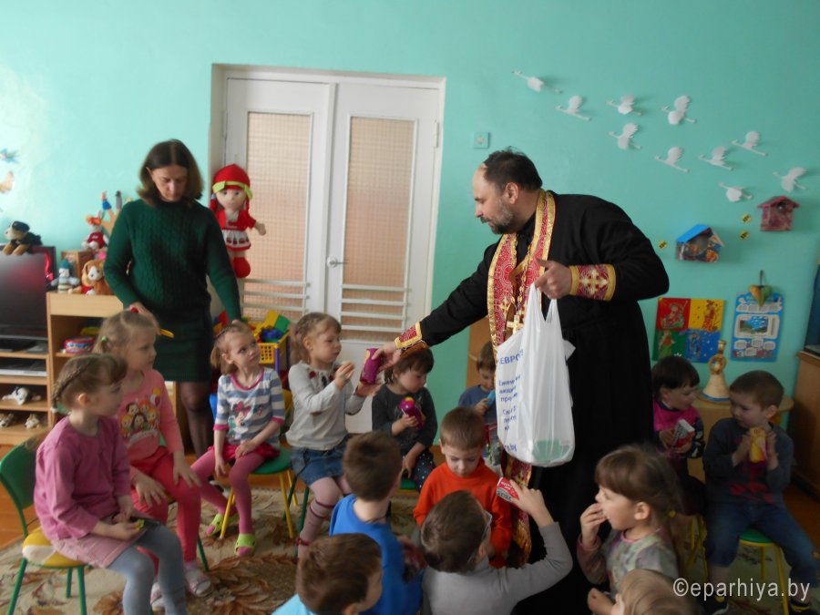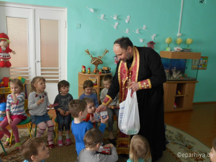 19 апреля 2018 года священник храма прп. Серафима Саровского в г. Гомеле протоиерей Виталий Левчук поздравил с Пасхой и совершил Таинства Исповеди и Причастия для пациентов Онкологического диспансера по ул. Циолковского. Для людей, находящихся в тяжелой жизненной ситуации, борющихся со смертельным недугом такое событие стало большой духовной поддержкой. 18 апреля 2018 года клирик храма прп. Серафима Саровского протоиерей Виталий Левчук посетил ГУО "Гомельский городской социально-педагогический центр". По предварительной договоренности с руководством состоялось Таинство Причастия для находящихся в Центре детей. К сожалению, некоторые дети не были крещены и не смогли причаститься. Этот факт их очень расстроил, а руководство заставил задуматься о возможности совершить крещение для таких деток. В подарок детям были вручены куличи, сладости, а также иконки Пресвятой Богородицы и святых. 8 апреля 2018 года в Светлое Христово Воскресенье воспитанники детской воскресной школы при храме прп. Серафима Саровского посетили ГУО "Гомельский городской социально-педагогический центр". Ребята приготовили для своих сверстников пасхальное представление. В подарок были принесены сладкие куличи. 13 апреля 2018 года в рамках сотрудничества между учреждениями образования и Гомельской епархией клирик храма преподобного Серафима Саровского в г. Гомеле протоиерей Анатолий Федотов посетил ГУО "Средняя школа № 12 г. Гомеля". Пасхальным приветствием "Христос воскресе!" священнослужитель приветствовал коллектив, а также учащихся 8"Б" класса. В ответ раздавалось дружное: "Воистину воскресе!" В ходе беседы с учащимися протоиерей Анатолий Федотов рассказал о смысле Праздника Пасхи. Живой диалог вызвал множество вопросов, и ответов священника. В конце встречи заместитель директора по воспитательной работе Татьяна Николаевна Потороча выразила благодарность за поздравления и просветительскую беседу. 13 апреля традиционным детским утренником отметили Светлый Праздник Пасхи в ГУО "Ясли-сад 153" г. Гомеля. Почетным гостем мероприятия стали протоиерей Анатолий Федотов, клирик храма преподобного Серафима Саровского в г. Гомеле и методист городского Отдела образования, спорта и туризма Гомельского горисполкома Быстрова Людмила Васильевна. В актовом зале была приготовлена выставка пасхальных поделок, изготовленных семьями. Все работы поражали своей яркостью и мастерством. Священнослужитель приветствовал детей и родителей радостным пасхальным возгласом "Христос воскресе!" В ответ раздалось дружное восклицание: "Воистину воскресе!", в котором особенно трогательно звучали детские голоса. После небольшого поздравительного слова, начался концерт. Дети порадовали гостей песнями и стихами о Пасхе. После концерта все были приглашены на праздничное чаепитие, которое не обошлось без традиционного состязания в битье пасхальных яиц. По окончании мероприятия коллектив и родители испросили благословения священника на всякое доброе дело. На Светлой седмице в храме Серафима Саровского в г.Гомеле были организованы благотворительные акции по поздравлению с Пасхой инвалидов и многодетных, а также малообеспеченных семей, которых опекает приход. Семьям были доставлены пасхальные яйца и куличи. Также были отвезены картофель и овощи. |