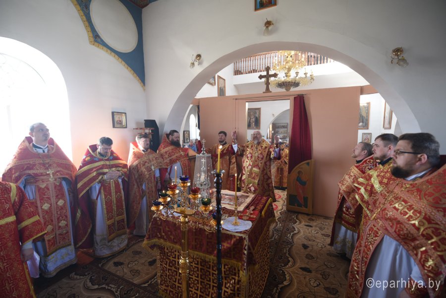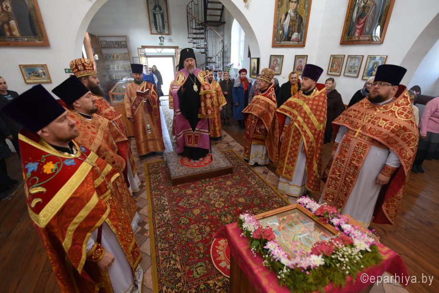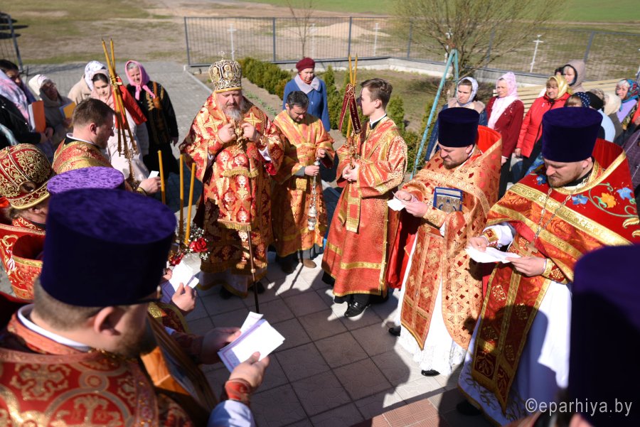Божественную литургию в субботу Светлой седмицы, день памяти прп. Марии Египетской, 14 апреля 2018г. Высокопреосвященнейший Стефан, архиепископ Гомельский и Жлобинский совершил в храме Успения Пресвятой Богородицы в аг.Узнаж. Высокопреосвященнейшему сослужили: благочинный монастырей Гомельской епархии Амвросий (Шевцов), благочинный Светлогорского округа протоиерей Александр Кисель, настоятель прихода иерей Павел Красиченко и духовенство округа. В завершении богослужения Высокопреосвященнейший Стефан возглавил Крестный ход, поздравил духовенство и прихожан храма с праздником Воскресения Христова и обратился к молящимся со словами Архипастырского назидания. |