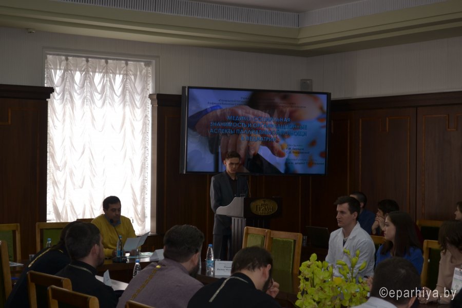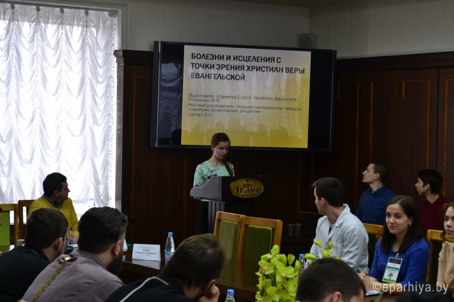 12 апреля 2018 года, по благословению Высокопреосвященнейшего Стефана архиепископа Гомельского и Жлобинского, в рамках сотрудничества между Министерством здравоохранения и Белорусской Православной Церковью в учреждении образования «Гомельский государственный медицинский университет» состоялись научно-образовательные чтения «Актуальные проблемы биоэтики: взгляд медицины и Церкви». В Чтениях приняли участие представители духовенства Гомельской епархии: Председатель Комиссии по канонизации святых Гомельской епархии протоиерей Александр Лопушанский, Председатель отдела по молодежному служению Гомельской епархии иерей Дмитрий Мельников, клирик Свято-Петро-Павловского собора протоиерей Вадим Лапицкий, клирик прихода храма Иверской иконы Божией Матери диакон Сергей Варакса. Чтения проходили в главном корпусе ГомГМУ в зале заседания Совета университета. Организаторами научно-образовательных чтений выступили Гомельская епархия, УО «Гомельский государственный медицинский университет», молодежное братство православных студентов-медиков в честь прп. Манефы Гомельской. В чтениях приняли участие студенты, молодые ученые, специалисты различных сфер медицины, преподаватели и студенты ГомГМУ. Специальными гостями нынешних чтений были студенты-медики из Японии (Фукусима). В ходе работы чтений были рассмотрены и обсуждены такие темы, как воздействие христианских веры и жизни на душевное и телесное состояние человека; верующие христиане ученые-медики лауреаты Нобелевской премии; пагубность современного насаждения язычества («куклы-обереги», различные амулеты и пр.); экстракорпоральное оплодотворение; суррогатное материнство; паллиативная помощь; эвтаназия и др. Яркая подача докладов, их оживленное обсуждение и дискуссии показали живой интерес как самих выступающих, так и присутствовавших на чтениях слушателей к затрагиваемым темам, что свидетельствует о непреходящей актуальности тематики данных чтений для нашего времени. |