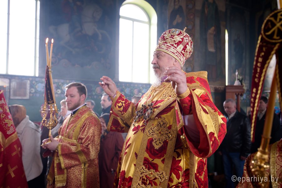 Божественную литургию в Неделю 2-ю по Пасхе (Антипасху) 15 апреля 2018г. Высокопреосвященнейший Стефан, архиепископ Гомельский и Жлобинский совершил в храме Святой Живоначальной Троицы г.Жлобина. Высокопреосвященнейшему сослужили: секретарь Гомельской епархии протоиерей Георгий Алампиев, благочинный монастырей Гомельской епархии архимандрит Амвросий (Шевцов), благочинный Жлобинского округа протоиерей Василий Пилипенко и духовенство округа. По окончании богослужения Владыка поздравил причастников с принятием Святых Христовых Таин, обратился со словами Архипастырского назидания, а все маленькие прихожане получили сладкие подарки. |