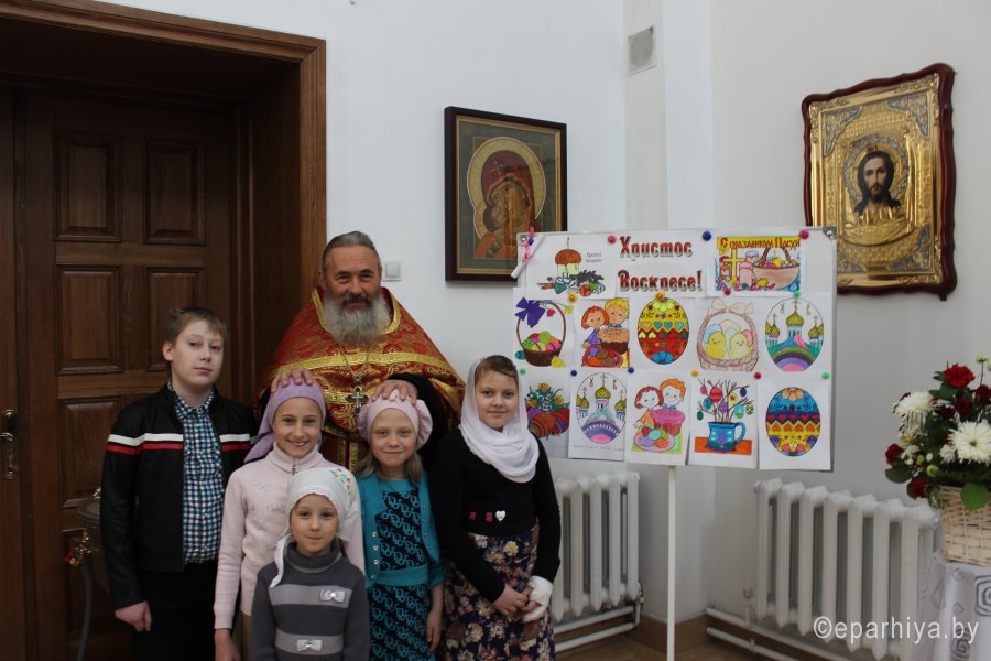 На Светлой Пасхальной седмице настоятель храма святого великомученика и целителя Пантелеимона в г. Гомеле протоиерей Владимир Сулимов совместно с сестрами Милосердия посетил больницы при храмах Гомельского областного клинического онкологического диспансера, Гомельского областного клинического кардиологического диспансера, городской клинической больница №2, Гомельской областной специализированной клинической больницы, Гомельского областного кожно-венерологического диспансера, поздравив пациентов, находящихся на лечении. Священнослужитель окропил святой водой пациентов больницы, а также раздали пасхальные угощения. Не остались без внимания в Светлый Праздник Пасхи и пожилые люди, которые уже не могут сами прийти в храм. Настоятель храма навестил их на дому с подарками в виде продуктовых наборов и средств личной гигиены. Выставка детских рисунков на православную тематику «Светлое Христово Воскресение в наших сердцах» состоялась 14 - 15 апреля 2018 г. на Светлой седмице в храме святого великомученика и целителя Пантелеимона в г. Гомеле. Участие приняли воспитанники воскресной школы – дети от 5 до 12 лет. Настоятель храма протоиерей Владимир Сулимов поздравил ребят со Светлым Праздником и сердечно поблагодарил за активное участие в жизни прихода. |