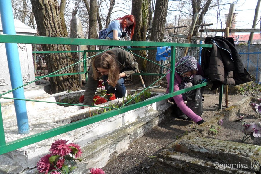 Накануне Радоницы, дня особого поминовения усопших, молодежная группа прихода храма св. блгв. кн. Александра Невского в г.Гомеле приняла участие в акции по наведению порядка на Новобелицком кладбище. Вооружившись инвентарем, молодежь отправилась туда, чтобы привести могилы в надлежащий вид и тем самым воздать память предкам. Во время уборки среди ребят царила дружеская атмосфера, недаром говорят, что совместный труд объединяет и воспитывает в людях прекрасные качества, такие как взаимопомощь, уважение, терпение и многие другие. |
