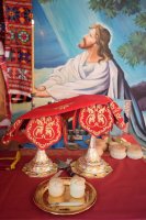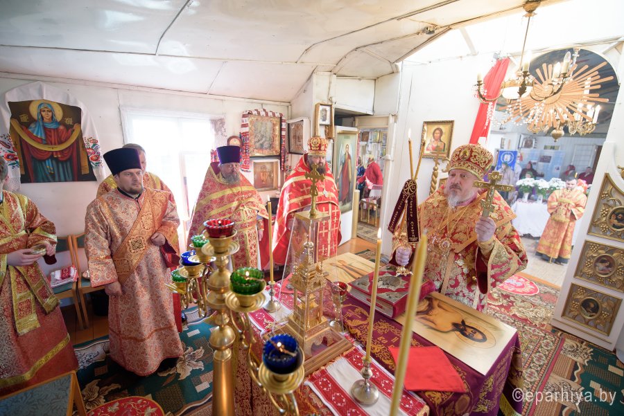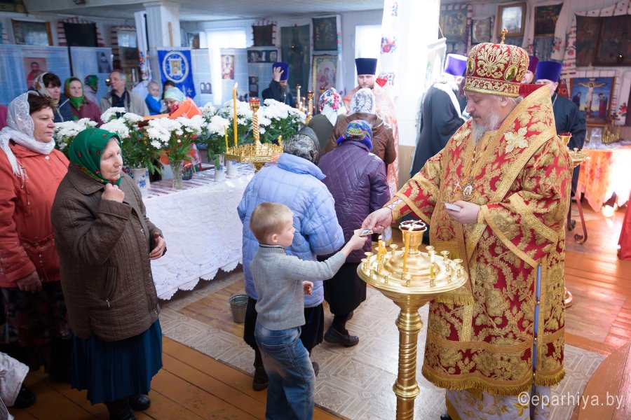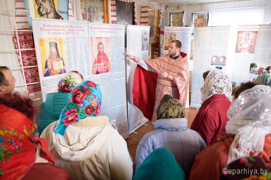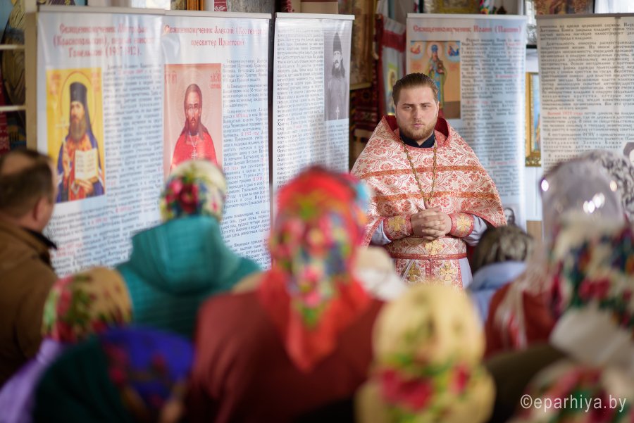 Божественную литургию в день памяти сщмч. Алексия (Кротенкова), 18 апреля 2018г. Высокопреосвященнейший Стефан, архиепископ Гомельский и Жлобинский совершил в храме святителя Николая Чудотворца аг.Неглюбка. Высокопреосвященнейшему сослужили: благочинный монастырей Гомельской епархии архимандрит Амвросий (Шевцов), председатель комиссии по канонизации святых Гомельской епархии протоиерей Александр Лопушанский, настоятель прихода протоиерей Федор Еремейчик и духовенство епархии. Перед началом богослужения ключарь Свято-петро-Павловского кафедрального собора г.Гомеля иерей Алексей Сергеев провел открытие выставки «В терпении – спасение», посвященной подвигу новомучеников и исповедников земли Гомельской. Со словами проповеди по запричастном стихе к молящимся обратился протоиерей Александр Лопушанский. По окончании богослужения Высокопреосвященнейший Стефан совершил благословение новонаписанного образа сщмч. Алексия (Кротенкова), обратился к молящимся со словами Архипастырского назидания и в память об этом дне раздал всем присутствующим иконки. Сегодня Господь открывает нам все новые имена святых подвижников, чья жизнь была связана с Гомельщиной. Одним из таких удивительных людей был священномученик Алексий Ирбитский (Кротенков). Уроженец д. Неглюбка, Ветковского района он пострадал за веру Христову 18 апреля 1930 года в Уральской области. На Гомельщине священномученик Алексий прожил около 30-ти лет своей жизни и сегодня мы по праву считаем его одним из небесных покровителей Гомельской епархии. |