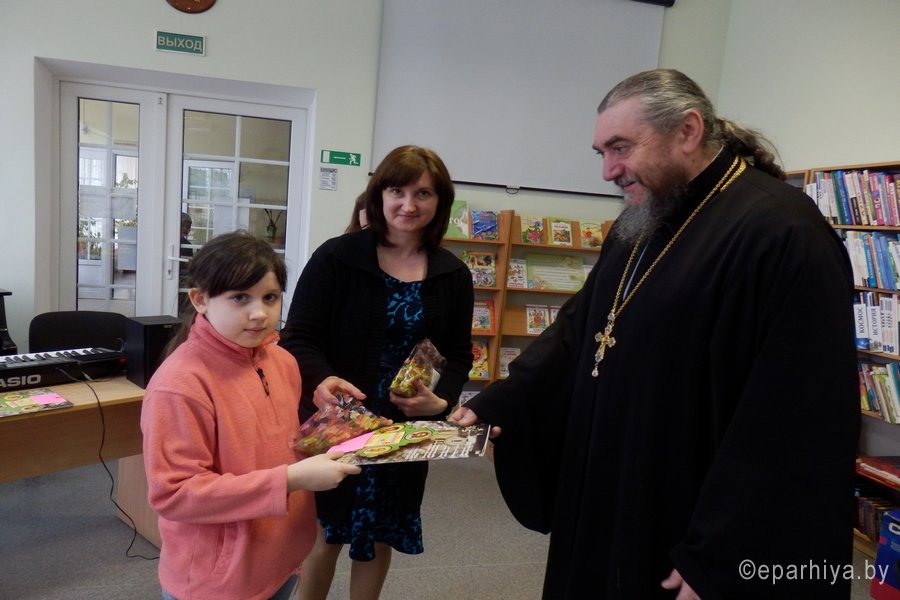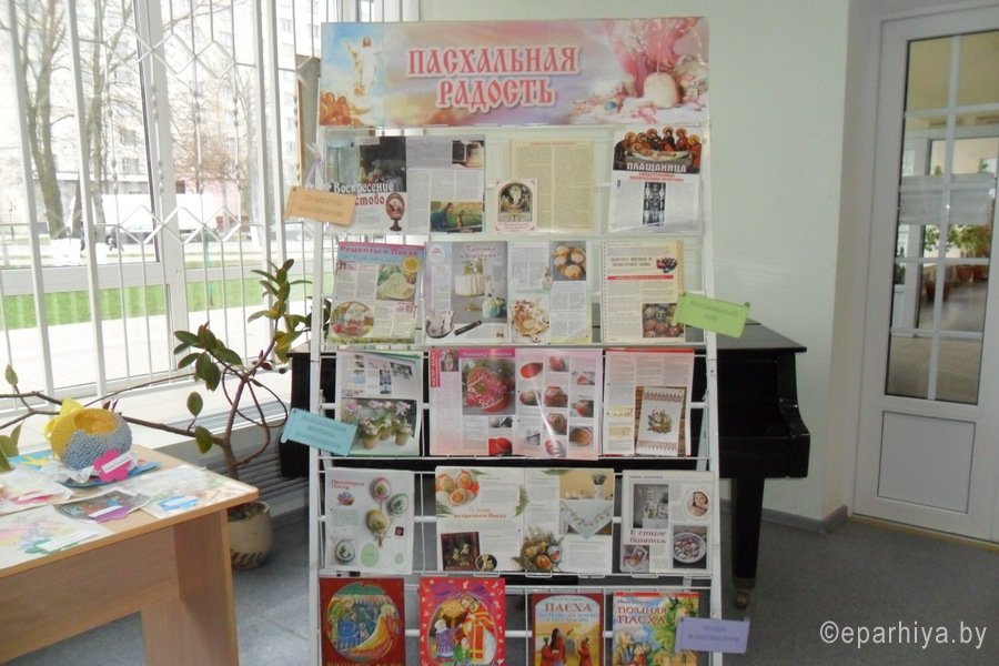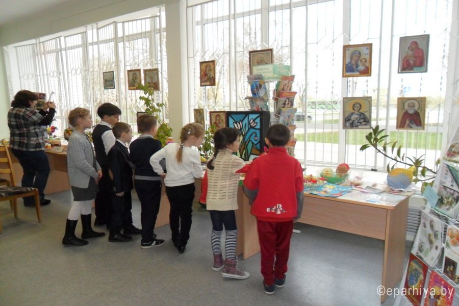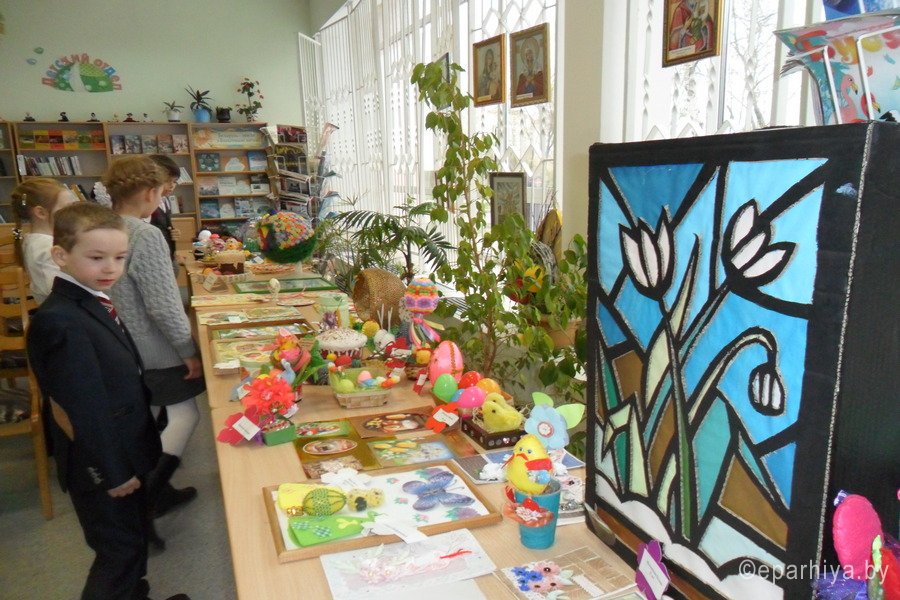 19 апреля 2018 года на базе ГУ «Сеть публичных библиотек г.Гомеля», библиотеки–филиала №1 имени И.Мележа подведены итоги выставки-конкурса семейного и детского творчества «Пасхальная радость». Учредители конкурса Отдел социального служения и церковной благотворительности Гомельской епархии в сотрудничестве с приходом храма святого благоверного князя Александра Невского г.Гомеля и библиотекой имени И.Мележа. На выставке были представлены как индивидуальные, так и групповые работы в различных стилях и техниках от 72 участников кружка творческого моделирования «Шаг навстречу», «Творческой лабораторией выходного дня», ГУО «Ясли–сад № 11 г.Гомеля», учащимися ГУО «Гимназии № 14г.Гомеля», ГГОО «Союз многодетных семей» и др. Работы отражают традиции Светлого Праздника, изображают события из жития православных святых, связанные с чудесами, произошедшими на Пасху, повествуют о добрых делах, творимых верующими. Всех участников выставки-конкурса поздравил и вручил призы протоиерей Владимир Силенко, настоятель храма святого благоверного князя Александра Невского г.Гомеля. |