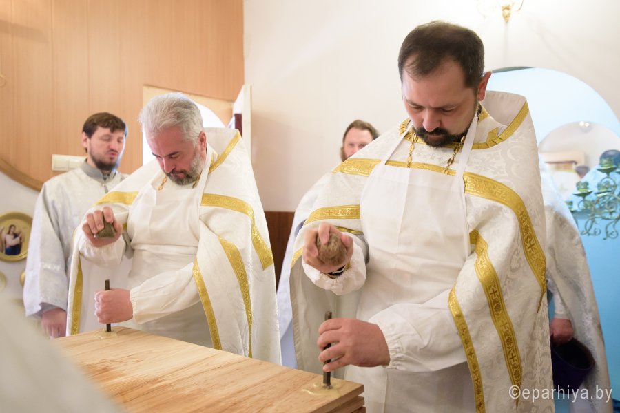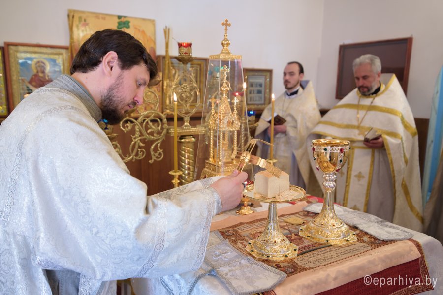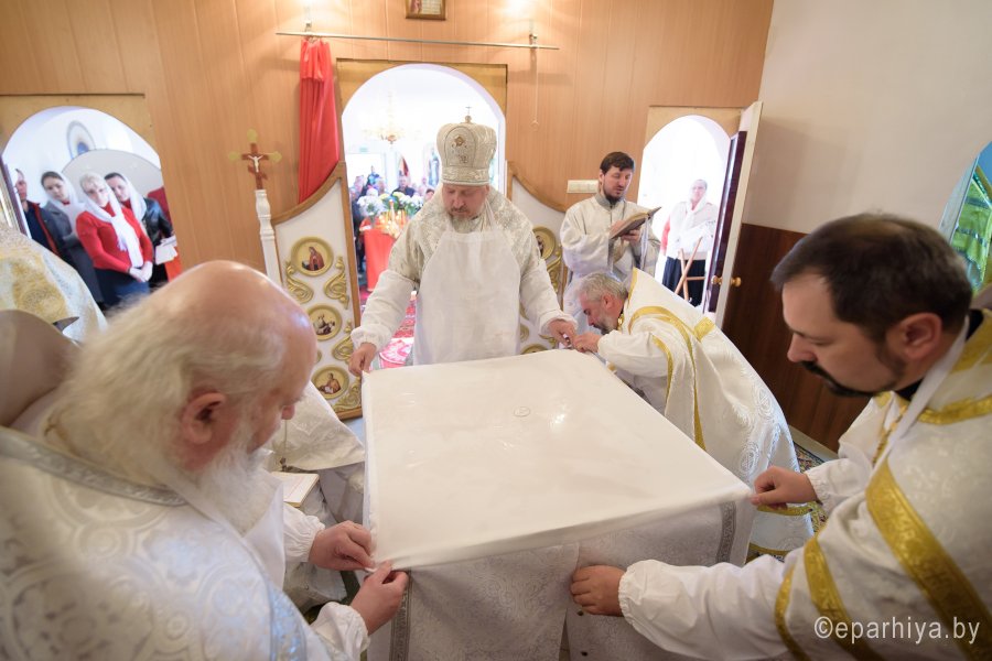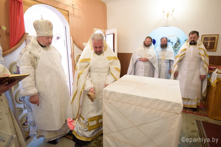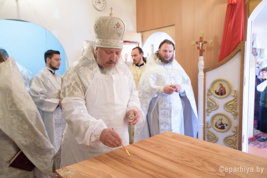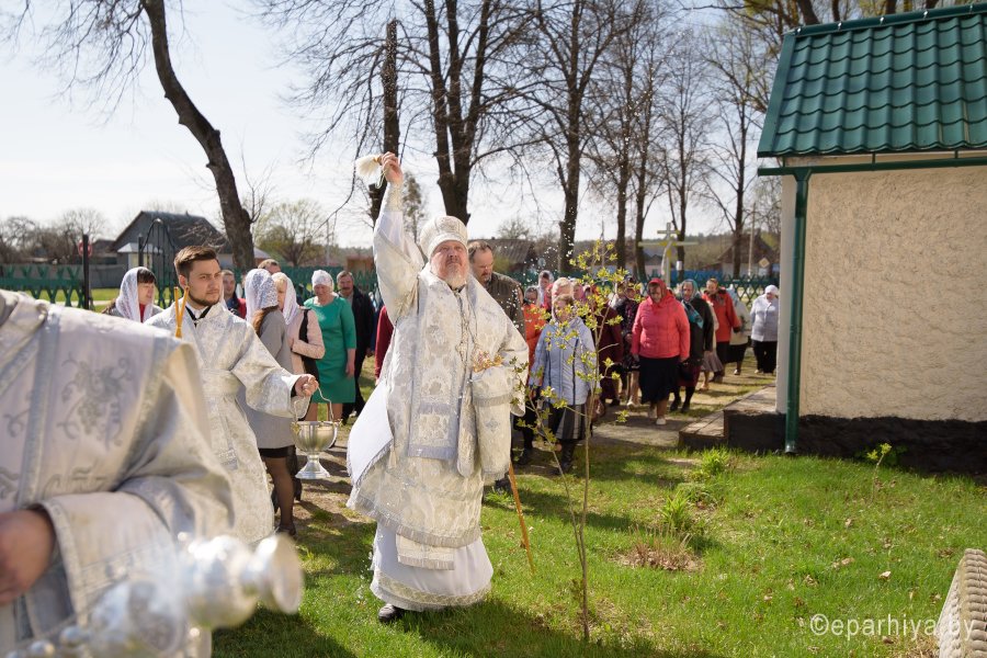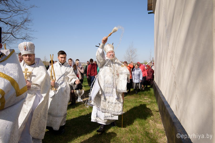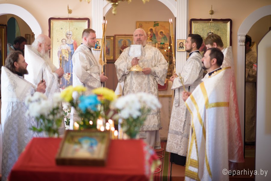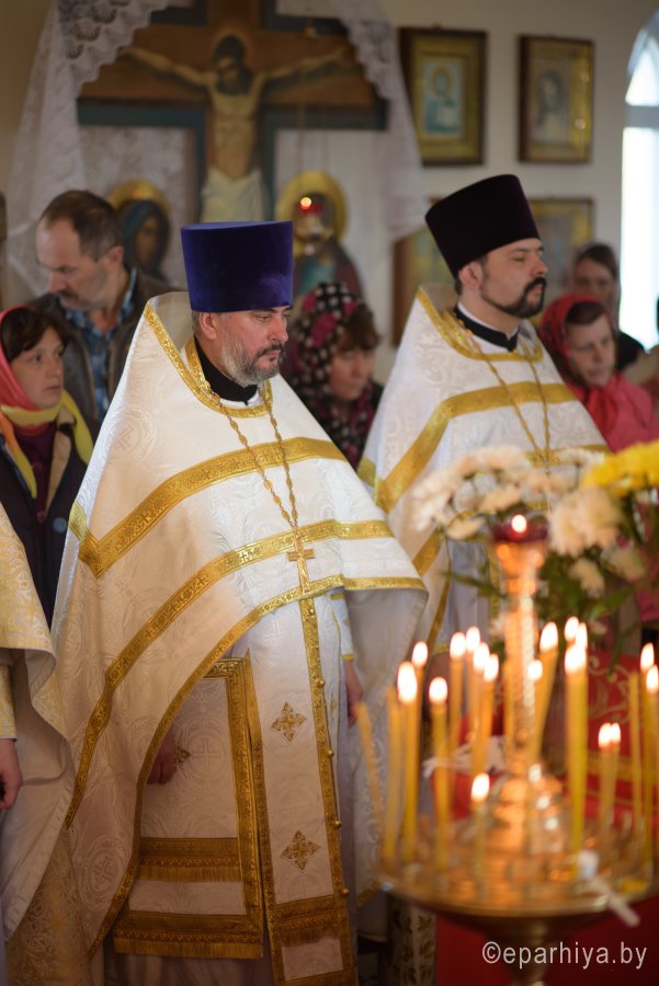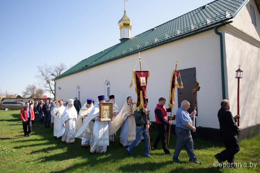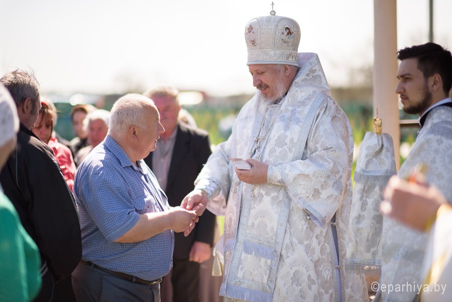 Божественную литургию и чин освящения храма в субботу 2-й седмицы по Пасхе Высокопреосвященнейший Стефан совершил в храме святителя Феодосия Черниговского в д.Новая Буда. Высокопреосвященному сослужили: секретарь Гомельской епархии протоиерей Георгий Алампиев, благочинный Гомельского районного округа протоиерей Артемий Кривицкий, настоятель прихода иерей Виталий Мешков и духовенство округа. По окончании богослужения Владыка возглавил Крестный ход, поздравил причастников с принятием Святых Христовых Таин, обратился к молящимся со словами Архипастырского назидания и раздал присутствующим памятные иконки. |