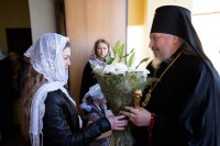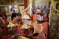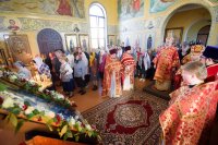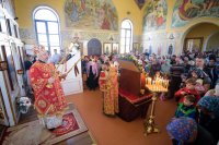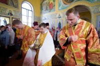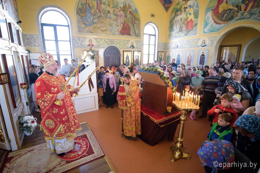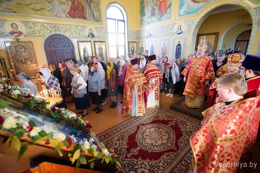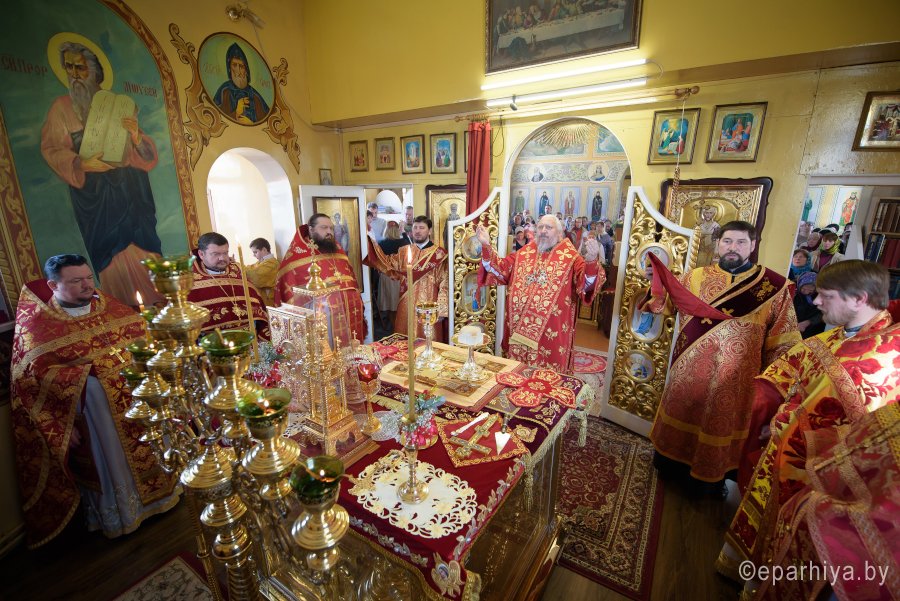 Божественную литургию в Неделю 3-ю по Пасхе, праздник Жен-мироносиц, Высокопреосвященнейший Стефан, архиепископ Гомельский и Жлобинский совершил в храме Преображения Господня г.Гомеля. Высокопреосвященному сослужили: секретарь Гомельской епархии протоиерей Георгий Алампиев, благочинный монастырей Гомельской епархии архимандрит Амвросий(Шевцов), благочинный Гомельского городского округа протоиерей Игорь Ольшанов, настоятель прихода протоиерей Олег Кострома и духовенство храма. За богослужением клирик храма Преображения Господня г.Гомеля иерей Вадим Грицков был удостоен правом ношения набедренника. По окончании Литургии Владыка поздравил всех с праздником и обратился к молящимся со словами Архипастырского назидания. |