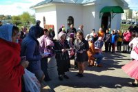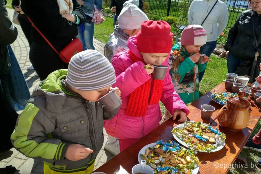 Храм св. блгв. кн. Александра Невского в г.Гомеле Праздничный концерт «Следуя за Христом», посвященный Дню святых жен–мироносиц, состоялся 22 апреля на территории храма св. блгв. кн. Александра Невского в г. Гомеле. Зрителями представления стали прихожане и гости храма. Всех их заботливо угостили чаем с печеньем и конфетами, а молодежная группа прихода поздравила праздничными открытками. Перед началом праздничного действа прозвучало вступительное слово настоятеля прихода храма св. блгв. кн. Александра Невского в г. Гомеле протоиерея Владимира Силенко. Священник поздравил всех с праздником и напомнил, что в эти пасхальные дни мы прославляем святых жен-мироносиц, которые являются для всех нас примером верности Христу, глубокой веры и любви к Богу. Своими удивительными номерами прихожан порадовали учащиеся ГУО «Средняя школа № 15 г. Гомеля», посещающие объединения по интересам «Ангел» и «Крепыш», а также хореографические ансамбли «Барбарискин» и «Лучик». Ребята замечательно пели, читали стихи, танцевали. Юных артистов неизменно награждали бурными аплодисментами. По окончании мероприятия протоиерей Владимир Силенко еще раз поздравил всех с праздником, и вручил всем выступающим сладости. Приход храма выражает благодарность директору ГУО «Средняя школа № 15 г. Гомеля» Черненко Марине Владимировне, руководителям объединений по интересам Кукса Лилии Евгеньевне, Воронович Оксане Владимировне, преподавателю ритмики Крюковой Елене Павловне, руководителю хореографического ансамбля Шатун Татьяне Валерьевне, педагогу – организатору Лопата Ольге Николаевне и воспитателю группы продленного дня Ракицкой Светлане Михайловне за сотрудничество в организации и проведении мероприятия, а также всем, кто принял участие в подготовке праздничного концерта. Храм св.вмч. Пантелеимона в г.Гомеле В храме святого великомученика и целителя Пантелеимона в г. Гомеле 22 апреля по окончании божественной Литургии состоялся праздничный концерт, посвященный «Воскресению Христову» и «Святым Женам-Мироносицам», в котором приняли активное участие дети Воскресной школы. Праздничный спектакль согрел сердца всех присутствующих в храме. Каждому он подарил немного солнца и тепла в душе. По окончании концерта настоятель храма протоиерей Владимир Сулимов поблагодарил всех ребят и вручил им сладкие подарки. В этот торжественный день были поздравлены все прихожанки храма. Ведь день жен-мироносиц — это праздник каждой православной христианки, православный женский день. Храм Преображения Господня в г.Светлогорске В 3-ю Неделю по Пасхе Православная Церковь прославляет подвиг Святых Жен-мироносиц. 22 апреля по окончании Божественной литургии в храме Преображения Господня в г.Светлогорске состоялся крестный ход с чтением Евангелия и окроплением святой водой. Затем клирик храма иерей Евгений Новик обратился ко всем присутствующим с проповедью, поздравил женщин с праздником и вручил им цветы. В этот день также приняли поздравление все женщины с именем в честь Тамары, царицы Грузинской. Храм св.вмч. Георгия Победоносца в г.Гомеле 22 апреля 2018г., в третью Неделю по Пасхе, Православная Церковь чтит память святых Жен-мироносиц. В народе - это православный женский день. В храме св. вмч. Георгия Победоносца г.Гомеля, по окончании Божественной литургии настоятель пр
