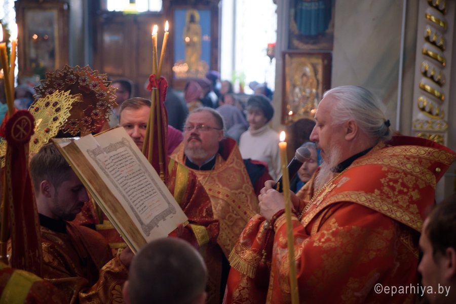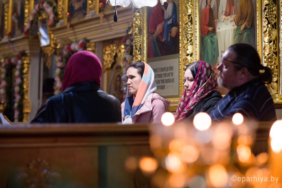 Вечернее богослужение с чтением акафиста нараспев Высокопреосвященнейший Стефан архиепископ Гомельский и Жлобинский совершил в Соборе святых апостолов Петра и Павла г. Гомеля в сослужении духовенства собора в третью Неделю по Пасхе. По окончании богослужения Владыка обратился к присутствующим со словами Архипастырского назидания. |
