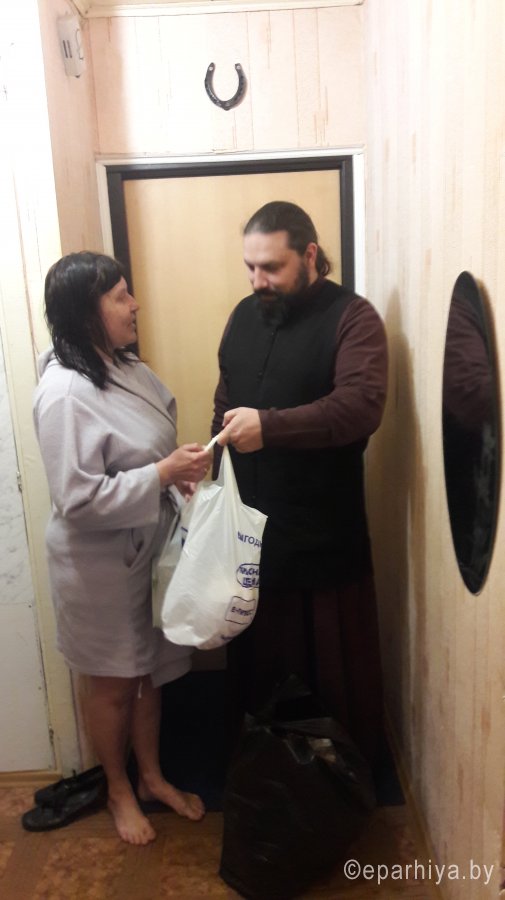 В пасхальные дни в храме святого Архангела Михаила в г. Гомеле традиционно проходят благотворительные акции. Так и в этом году иерей Максим Новик поздравил с Пасхой и передал необходимые продуктовые наборы многодетной семье Рудаковых, а также бывшей сотруднице храма Валентине Брянской. |