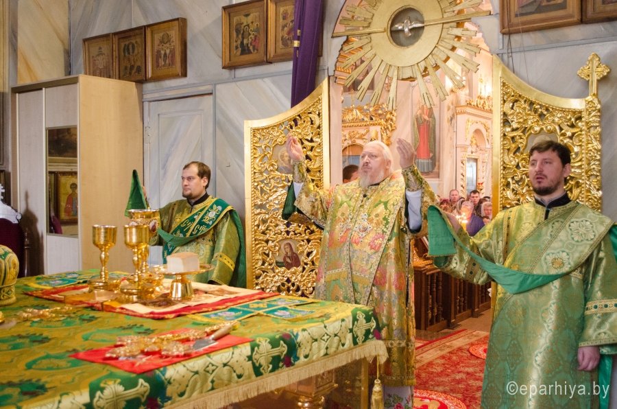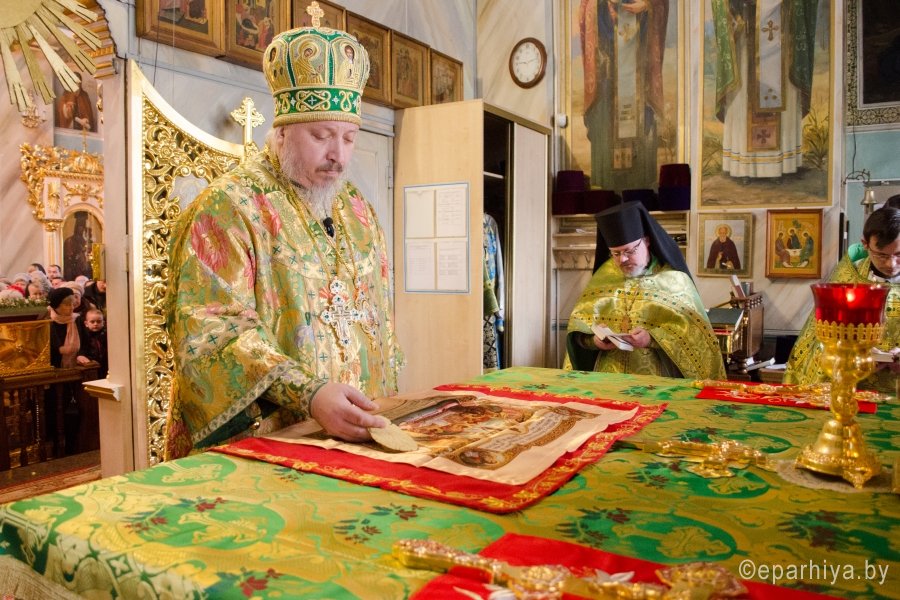 5 апреля 2015г., в Неделю ваий (Вербного Воскресения), праздник Входа Господня в Иерусалим, Преосвященнейший Стефан возглавил Божественную литургию в Свято-Петро-Павловском кафедральном соборе г.Гомеля. Преосвященному сослужили: секретарь Гомельской епархии протоиерей Георгий Алампиев и духовенство собора. По окончании Литургии Владыка совершил чин освящения ваий. |