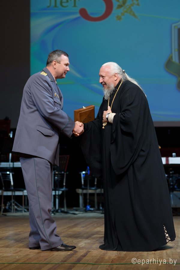 Высокопреосвященный Стефан, архиепископ Гомельский и Жлобинский принял участие в торжественном мероприятии, посвященном 25-летию Гомельской таможни, которое состоялось 4 мая 2018г. в Гомельском городском центре культуры. В ходе мероприятия Владыка поздравил начальника Гомельской таможни, советника таможенной группы I ранга Феликса Валентиновича Яшкова и сотрудников таможни с праздником и преподнес в дар Святой Образ. Высокопреосвященный отметил высокий профессионализм сотрудников таможни и пожелал помощи Божией в служении на благо экономической безопасности нашего государства. |