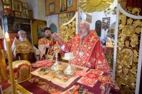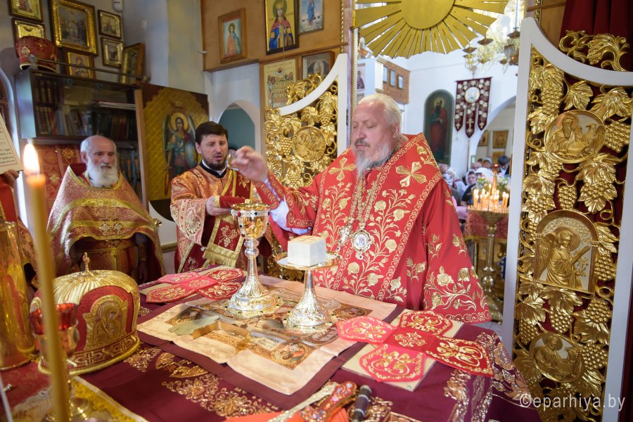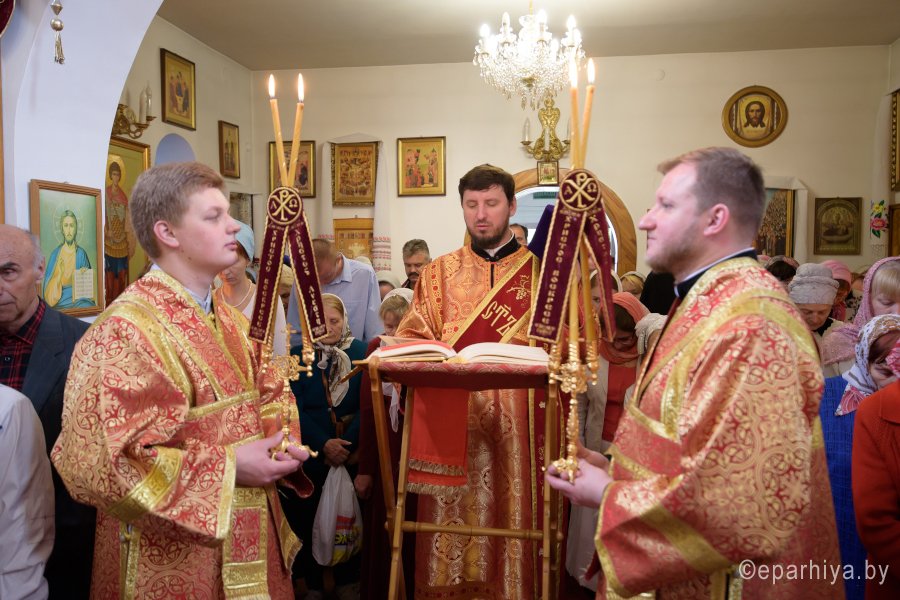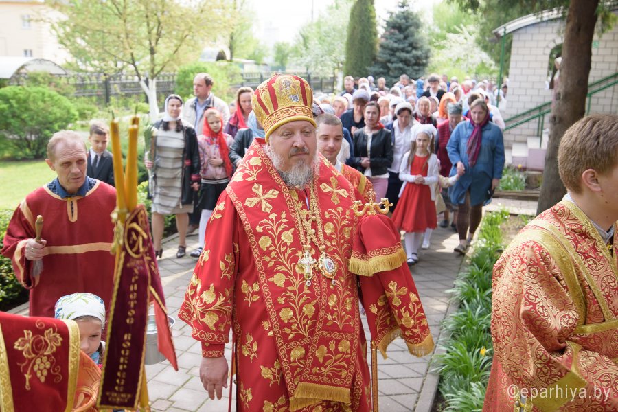 Божественную литургию в Неделю 5-ю по Пасхе, о самаряныне, день памяти святого великомученика Георгия Победоносца, Высокопреосвященный Стефан совершил в одноименном храме г.Гомеля. Высокопреосвященному сослужили: секретарь Гомельской епархии протоиерей Георгий Алампиев, духовник Гомельской епархии протоиерей Стефан Гладыщук, благочинный Гомельского городского округа протоиерей Игорь Ольшанов, настоятель прихода протоиерей Дмитрий Гончаров и духовенство храма. По окончании богослужения Владыка возглавил Крестный ход, поздравил причастников с принятием Святых Христовых Таин и в память об этом дне раздал иконки. |