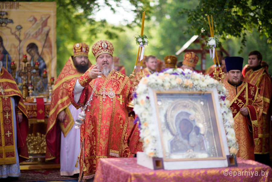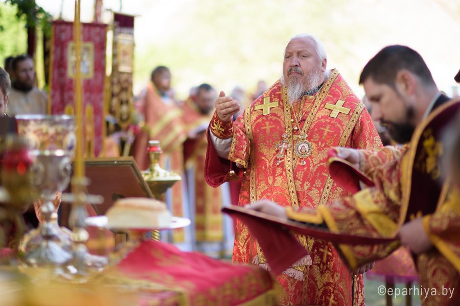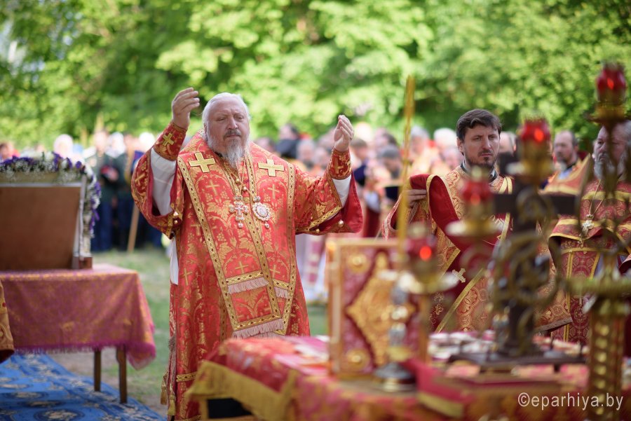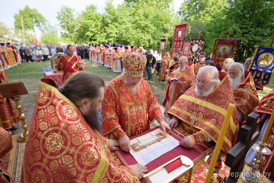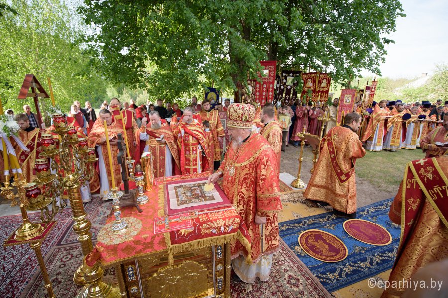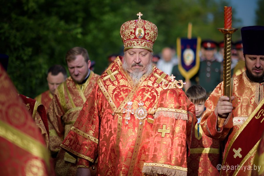 Среди огромного множества святых Русской Православной Церкви, отдельное место в памяти каждого верующего человека занимают те, кто несмотря на угрозу жизни праведно проповедуют свою веру, смиренно молятся и прощают врагов, кто под страхом смерти не изменяет своему пастырскому долгу. Молитвенное воспоминание мученического подвига одного из таких святых, священномученика Макария, митрополита Киевского, состоялось в преддверии дня памяти святого 12 мая 2018г. Крестный ход и соборное богослужение духовенства Гомельской епархии в этот день возглавил Высокопреосвященный Стефан архиепископ Гомельский и Жлобинский на месте бывшего Макариевского монастыря в пос.Рассвет Добрушского района. Высокопреосвященному сослужили: секретарь Гомельской епархии протоиерей Георгий Алампиев, благочинный монастырей Гомельской епархии архимандрит Амвросий (Шевцов), благочинные округов епархии, председатели отделов и духовенство Гомельской епархии. За богослужением молились игуменья Свято-Тихвинского женского монастыря Вера (Афонькина) с сестрами, игуменья Свято-Успенского женского монастыря д.Казимирово Иоанна (Ярец) с сестрами и старшая сестра Свято-Иоанно-Кормянского женского монастыря Архелая (Новикова) с сестрами. Уставные песнопения исполнил хор Свято-Никольского храма в г.Добруш. Проповедь о святителе Макарии Киевском произнес протоиерей Александр Лопушанский. По окончанию Богослужения, к собравшимся обратился Владыка Стефан и отметил, как важно чтить память священномучеников. Также архиепископ Гомельский и Жлобинский совершил чин освящения поклонного креста, установленного на месте бывшего Макарьевского монастыря, поблагодарил присутствующих, поздравил всех причастников с принятием Христовых Таин и вручил на память собравшимся иконки Казанской Божией Матери (копия иконы, сохранившейся из Макарьевского монастыря). В завершении Владыка пообщался с представителями православного казачества г.Гомеля. Исторические сведения о Макарьевском монастыре: ссылка. |