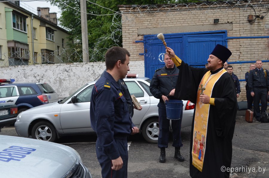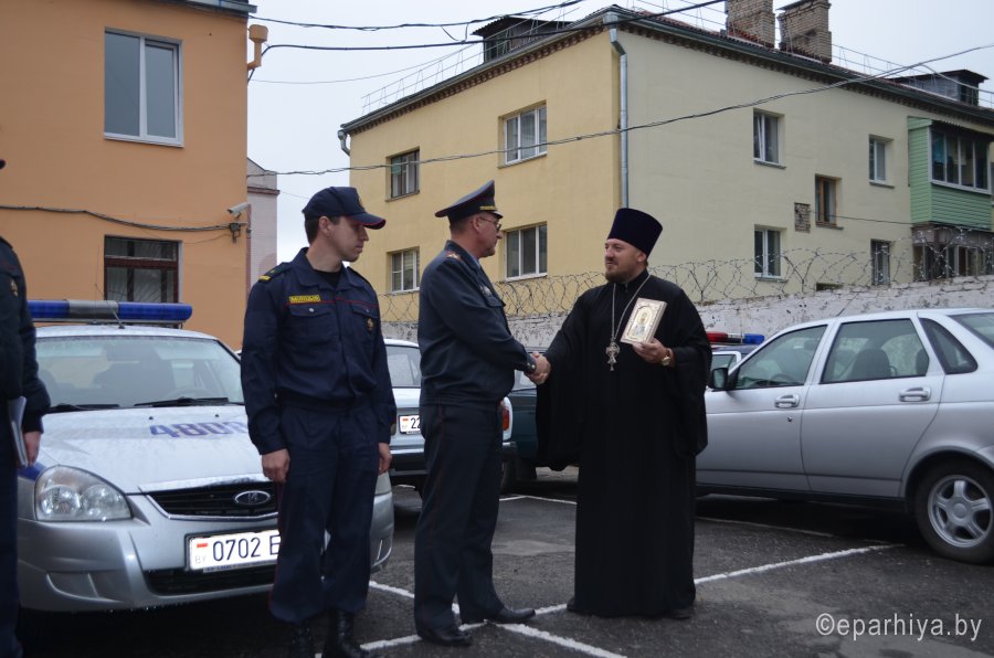 22 мая 2018 г. состоялась встреча личного состава районного отдела внутренних дел Светлогорского райисполкома с благочинным Светлогорского округа протоиереем Александром Киселем. Священник поздравил сотрудников милиции с днем памяти святителя Николая Чудотворца, рассказал о житии великого святого и в своем обращении к собравшимся отметил: «Создание атмосферы духовности и патриотизма в коллективе возможно только там, где есть вера, единство духа, сплоченность, справедливость, бескорыстие и порядочность. Я желаю мира и благополучия вам и вашим семьям, быть всегда и для всех примером чести и доблести, милосердия и любви к ближним, помощи Божией в вашем благородном служении». В завершение встречи протоиерей Александр Кисель совершил молебен перед началом всякого доброго дела, окропил всех сотрудников и здание отдела внутренних дел святой водой. Затем священник вручил икону святителя Николая Чудотворца начальнику РОВД Светлогорского района полковнику милиции Зезётко Александру Валерьевичу, выразив надежду на то, что молитвами святителя Николая Господь поможет сохранить мир и спокойствие в нашей стране. |