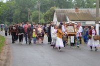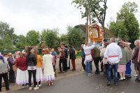 В д.Потаповка Буда-Кошелевского района в день памяти перенесения мощей свт. Николая Чудотворца из Мир Ликийских в Бар 22 мая был совершен Крестный ход со старинным образом святителя. После того, как прервалась традиция передачи иконы из дома в дом между прихожанами, у местной «свечи» появился постоянный хозяин. Мужчина бережно хранит икону на протяжении уже нескольких лет. Наполнили торжественностью данное шествие дети, посыпающие цветами дорогу, а церковный хор, задавал тон общей молитве. Крестный ход начался с кладбища, где была отслужена лития по умершим сродникам жителей деревни. По прибытию к центру деревни все собравшиеся получили памятные иконы. Для деревни такое мероприятие стало радостным событием. Благодаря ему местные жители объединились и забыли все свои невзгоды, ссоры, и обиды, приветствуя друг друга поздравляли с праздником. |