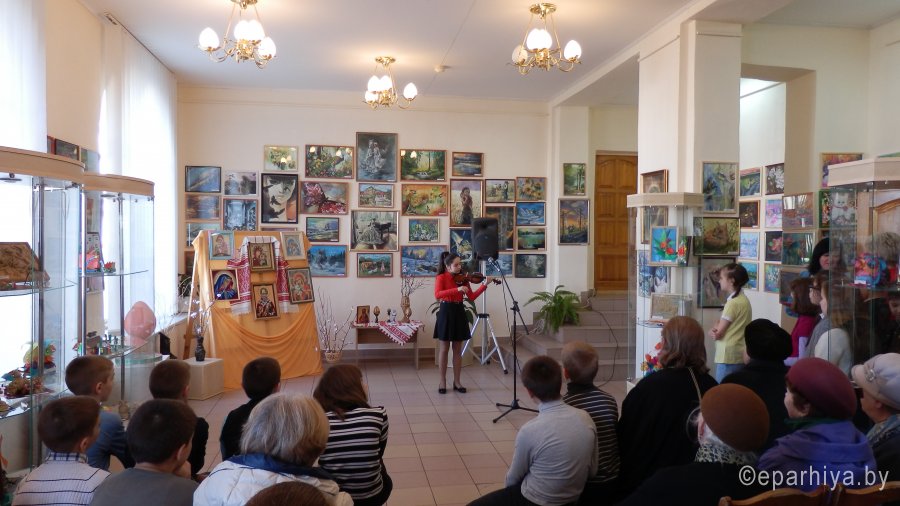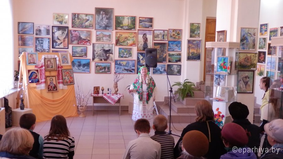 9 апреля 2015г. В ГУК «Светлогорском районном доме ремёсел» прошла "Пасхальная ярмарка гуканне вясны" В зале собрались родители и учащиеся школ города, а также приглашенные певцы, музыканты, хоровые исполнители и духовенство города, чтобы поучаствовать в ежегодной ярмарке, посвященной Пасхе. "Пасхальная ярмарка" проводилась в третий раз, но она уже успела принести свои положительные результаты, которые подтверждаются количеством проявивших интерес к этому мероприятию людей. Традиционно инициатором ярмарки выступила директор "Светлогорского районного дома ремёсел" Воронина Наталья Алексеевна. На ярмарке в зале студии-мастерской были представлены работы местных мастеров города. Проходили мастер классы; соломоплетения, роспись по дереву, аппликации соломкой, роспись по стеклу, керамике, батик, тапиарии. Сотрудник дома ремесел Евгения Александровна Близнец рассказала о том, какие обряды и традиции празднования Пасхи проводились белорусским народом. Образцовый концертный хор Светлогорской школы искусств под руководством Котвицкой Регины Грацыяновны исполнили песнопение "От Юности моея" Игоря Озерова. и др. Зрителей и участников ярмарки поздравил благочинный Светлогорского округа, настоятель храма Святых Первоверховных Апостолов Петра и Павла протоиерей Владимир Семенов с наступающим праздником Пасхи. В православии статус Пасхи как главного праздника отражают слова «праздников праздник и торжество из торжеств». В Новом Завете во время Тайной Вечери Иисус Христос произнёс слова и совершил действия, которые поменяли смысл праздника. Иисус Христос заменил Собой место пасхальной жертвы, и в результате «ветхая Пасха становится Пасхой нового Агнца, закланного ради очищения людей единожды и навсегда», а новой пасхальной трапезой становится Евхаристия. Священник рассказал, откуда пошла традиция красить яйца на Пасху. Во времена существования Римской империи, люди могли посетить императора с прошением, только принеся ему что-либо в дар. Богачи несли в подарок правителю золото, а те, у кого золота не было, приносили то, что было в домашнем хозяйстве. И вот когда Мария Магдалина решила принести императору Тиберию весть о воскресении Христа, оказалось, что у нее нет ничего кроме белого куриного яйца. Протянув свой подарок, она сказала «Христос воскрес!», но император рассмеялся и ответил, что поверит в эту новость, только если это белое яйцо сменит свой цвет на красный. Естественно, в тот же момент свершилось чудо, и яйцо стало ярко красным. Тогда удивленный император произнес «Воистину воскрес!». Отсюда и пошел обычай красить яйца и здороваться на Пасху этими словосочетаниями. И именно поэтому в старину красили яйца в красный цвет. В завершении поздравил с наступающим Светлым Христовым Воскресеньем. В завершении выступлений директор "Светлогорского районного дома ремёсел" Воронина Наталья Алексеевна поздравила с наступающим праздником Пасхи и пригласила всех присутствующих оставить памятную подпись на Пасхальном яйце. |