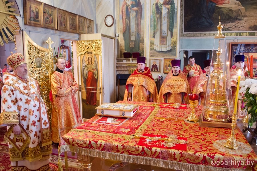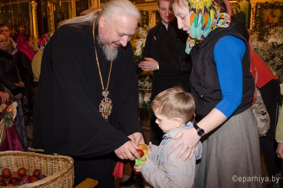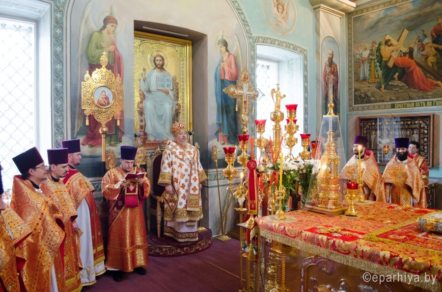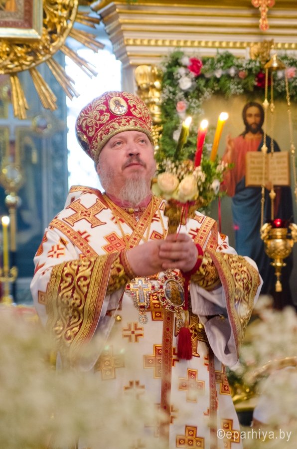 12 апреля 2015г., в день Пасхи Христовой, Преосвященнейший Стефан совершил вечерню в Свято-Петро-Павловском кафедральном соборе г.Гомеля. Преосвященному сослужили: секретарь Гомельской епархии протоиерей Георгий Алампиев и духовенство собора. |