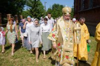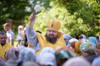 Божественную литургию в Неделю 1-ю по Пятидесятнице, Всех святых 3 июня 2018г. Высокопреосвященный Стефан, архиепископ Гомельский и Жлобинский совершил в храме Всех святых д.Пиревичи. Высокопреосвященному сослужили: благочинный монастырей Гомельской епархии архимандрит Амвросий (Шевцов), благочинный Жлобинского округа протоиерей Василий Пилипенко и настоятель прихода иерей Сергей Плетежов. За богослужением молились настоятельница Свято-Успенского женского монастыря д.Казимирово игуменья Иоанна (Ярец) и сестры обители. По окончании богослужения Владыка возглавил Крестный ход и обратился к молящимся со словами Архипастырского назидания. |