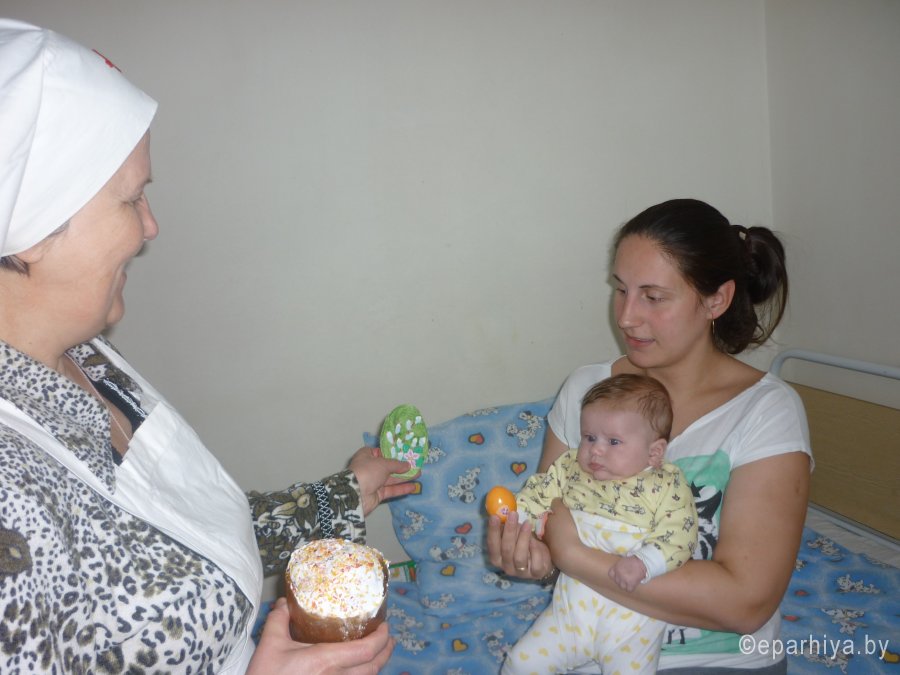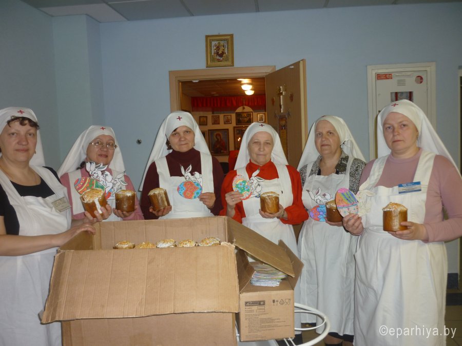 13 апреля 2015г, сестры сестричества св. великомученицы Варвары при Александро-Невском храме г. Гомеля, поздравили с Пасхой Христовой порядка 200 пациентов Республиканского центра радиационной медицины, подарив им освященные куличи и пасхальные яйца. Данное мероприятие прошло в рамках акции «Кулич в ладошке». Изготовили пасхальные сувениры и открытки, учащиеся воскресной школы прихода храма св. Благоверного князя Александра Невского. Данная акция уже стала традиционной и носит название «Дети поздравляют детей».