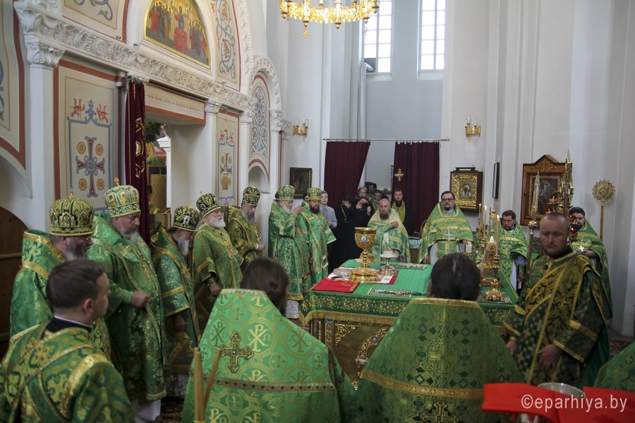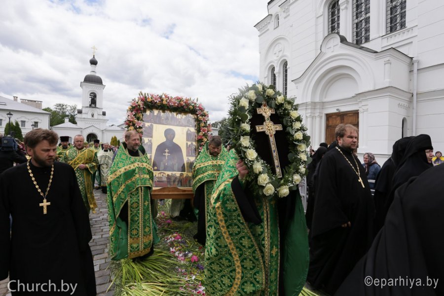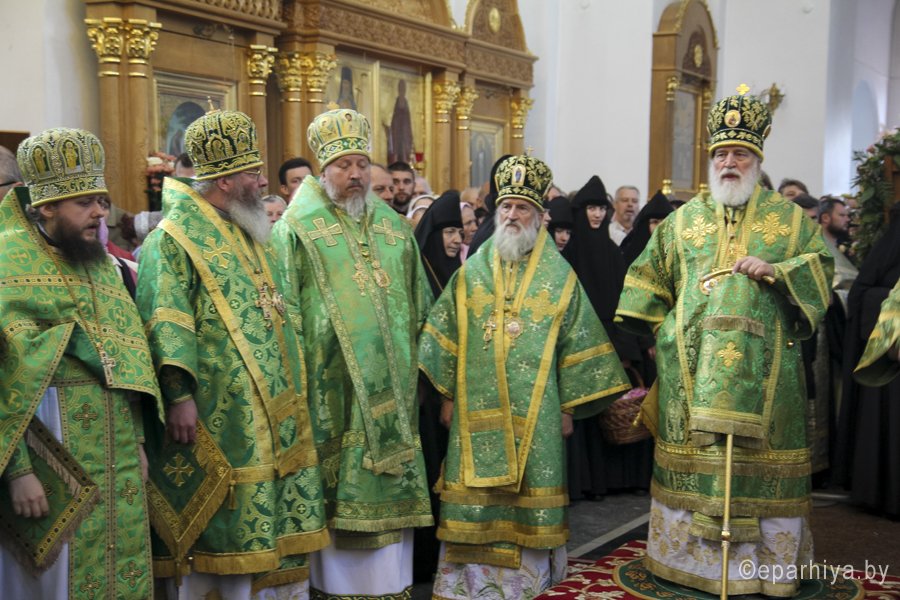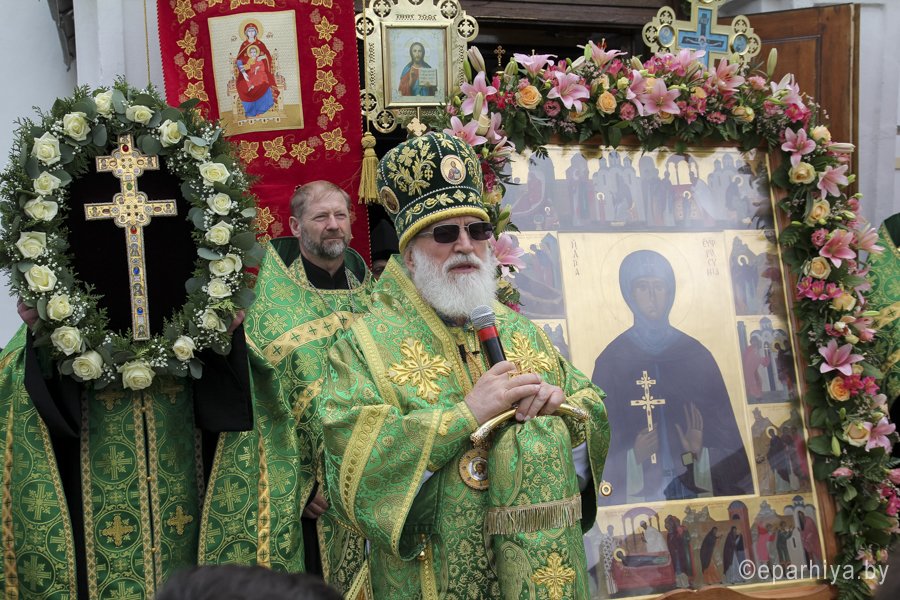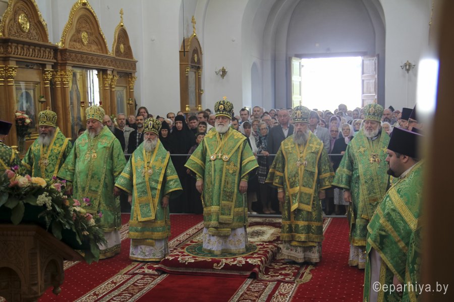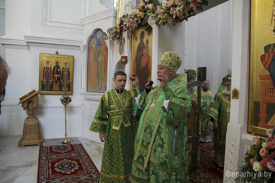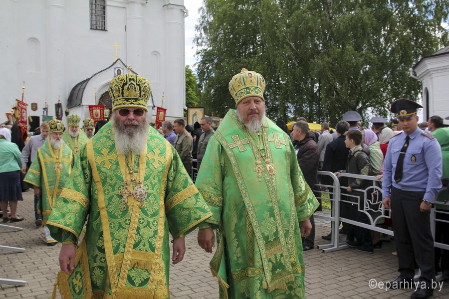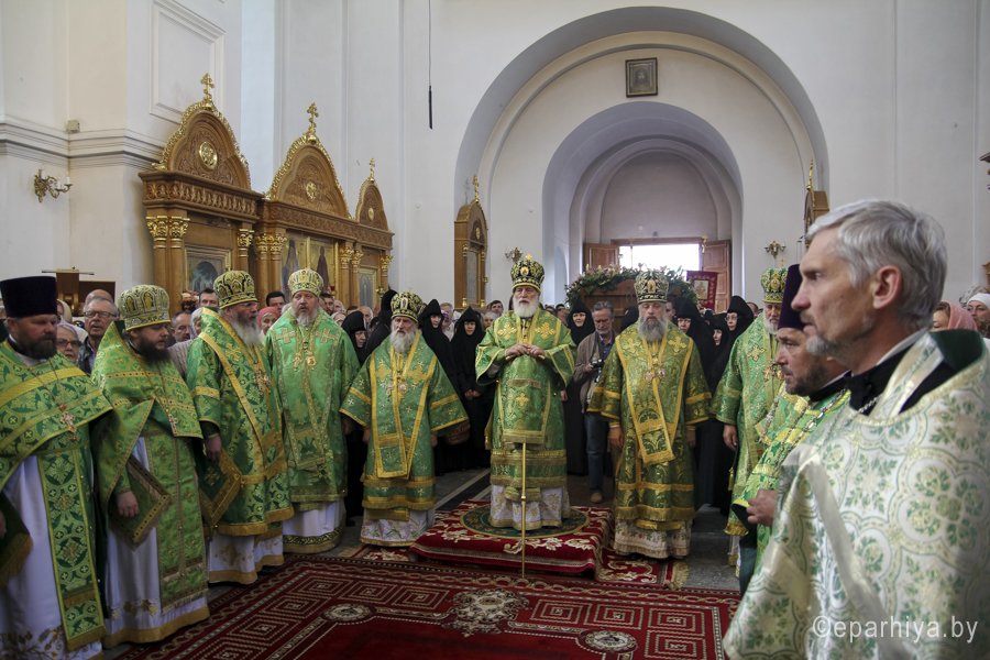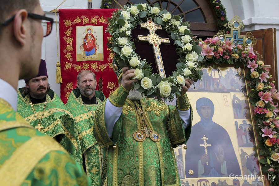 5 июня 2018 года, в праздник преподобной Евфросинии, игумении Полоцкой, Высокопреосвященный Стефан, архиепископ Гомельский и Жлобинский сослужил за Божественной литургией митрополиту Минскому и Заславскому Павлу, Патриаршему Экзарху всея Беларуси. Богослужение совершалось в Крестовоздвиженском соборе Спасо-Евфросиниевского женского монастыря города Полоцка. Его Высокопреосвященству также сослужили: архиепископы Могилевский и Мстиславский Софроний; Брестский и Кобринский Иоанн; Городницкий Александр, викарий Киевской епархии; епископы Молодечненский и Столбцовский Павел; Лидский и Сморгонский Порфирий. Архипастырям сослужили: управляющий делами Минской Экзархии архимандрит Сергий (Брич); секретарь Минской епархии, протоиерей Андрей Волков; клирики монастыря и приглашенные гости в священном сане. Богослужебные песнопения исполнил хор обители под управлением монахини Февронии (Бармичевой). Проповедь перед Причастием произнес клирик Спасо-Евфросиниевского монастыря, протоиерей Иоанн Гаврильчик. По заамвонной молитве архипастыри и сослужащие священнослужители совершили молебен преподобной Евфросинии, игумении Полоцкой. В этот день в Софийском соборе города Полоцка архиепископ Полоцкий и Глубокский Феодосий, епископы Бобруйский и Быховский Серафим и Борисовский и Марьиногорский Вениамин совершили Божественную литургию, по окончании которой прошел крестный ход по городским улицам в Спасо-Евфросиниевский монастырь. В монастыре два крестных хода встретились и проследовали к Спасо-Преображенскому храму монастыря, где завершилось богослужение. После отпуста и праздничного многолетия Патриарший Экзарх поздравил архипастырей, священнослужителей и всех благочестивых паломников и насельниц святой обители с праздником преподобной Евфросинии, игумении Полоцкой, и обратился ко всем присутствующим на монастырской площади со словом назидания. С приветственным словом ко всем пришедшим почтить память преподобной Евфросинии обратились: председатель областного Совета депутатов Витебской области Владимир Владимирович Тереньтев и председатель Полоцкого районного исполнительного комитета Николай Николаевич Шевчук. После богослужения митрополит Павел вместе с игуменией Евдокией посетил Лазарет и поздравил с праздником стариц обители, которые по состоянию здоровья не смогли быть на богослужении. Владыка преподал всем болящим архипастырское благословение, пожелал здоровья и многая лета. |