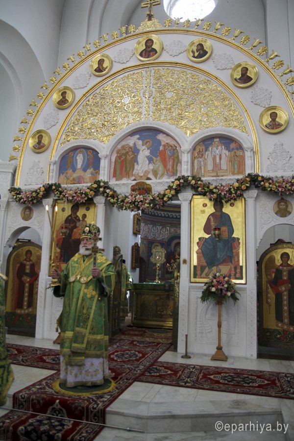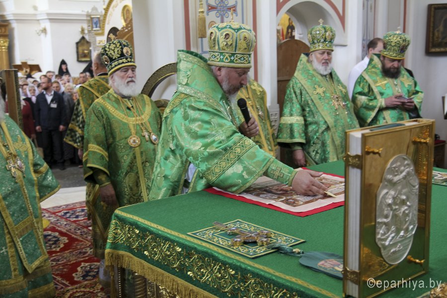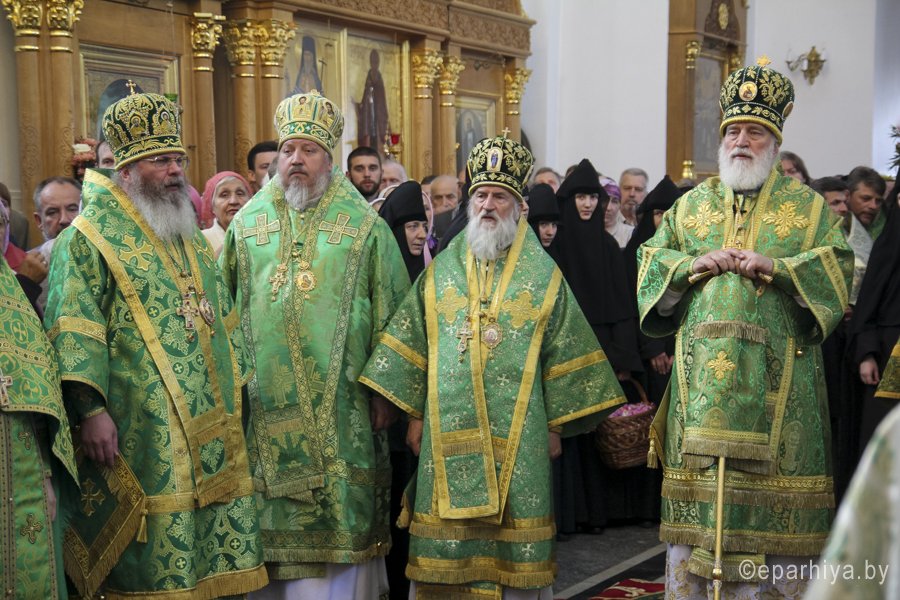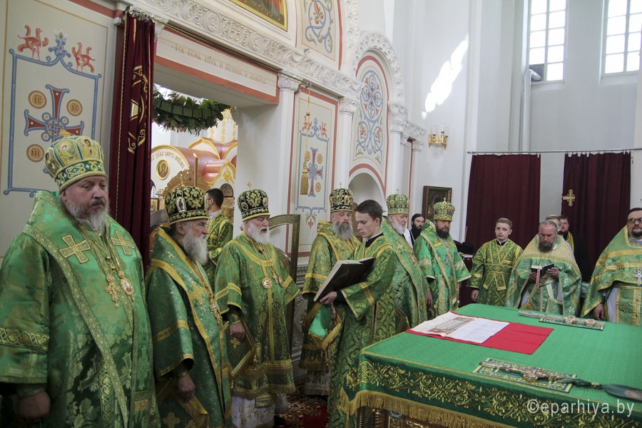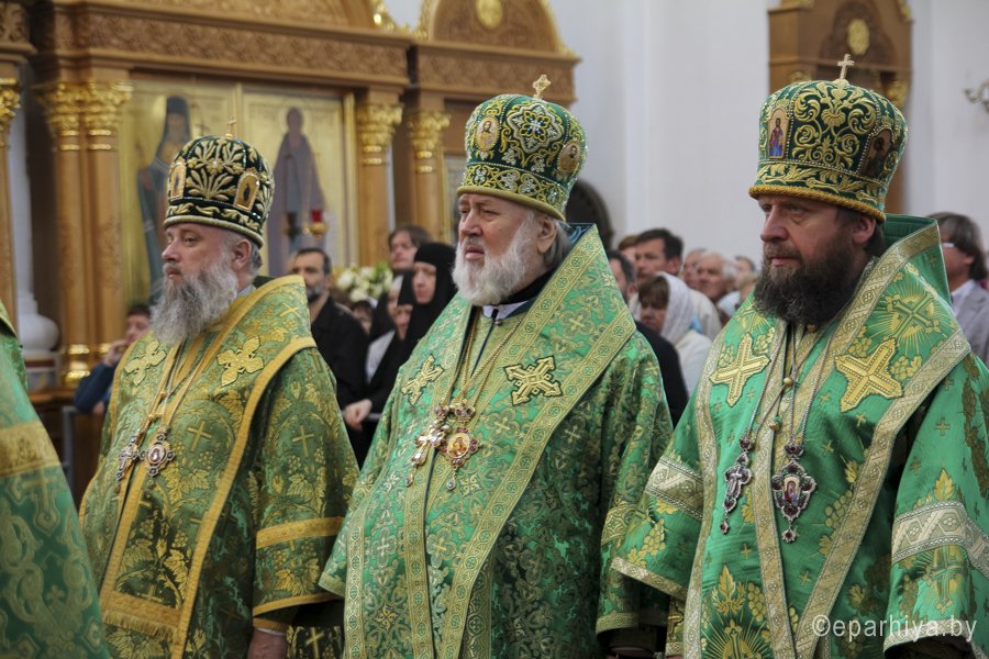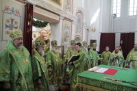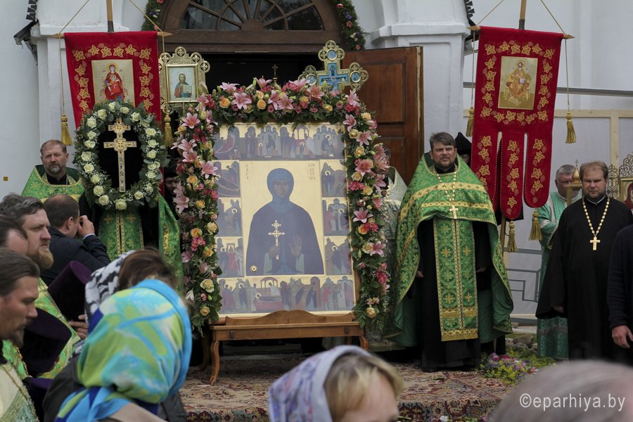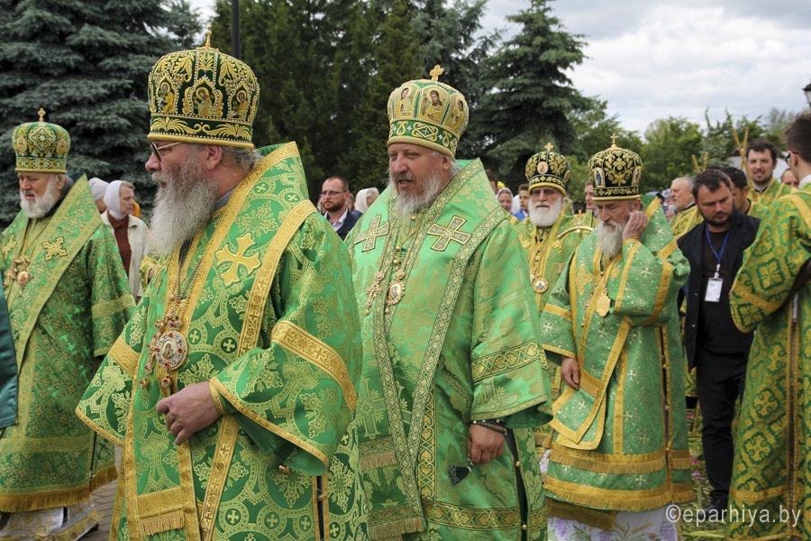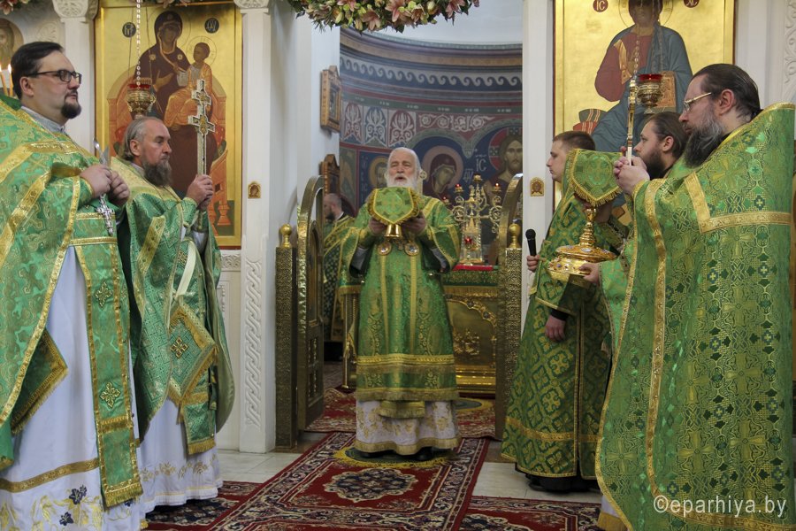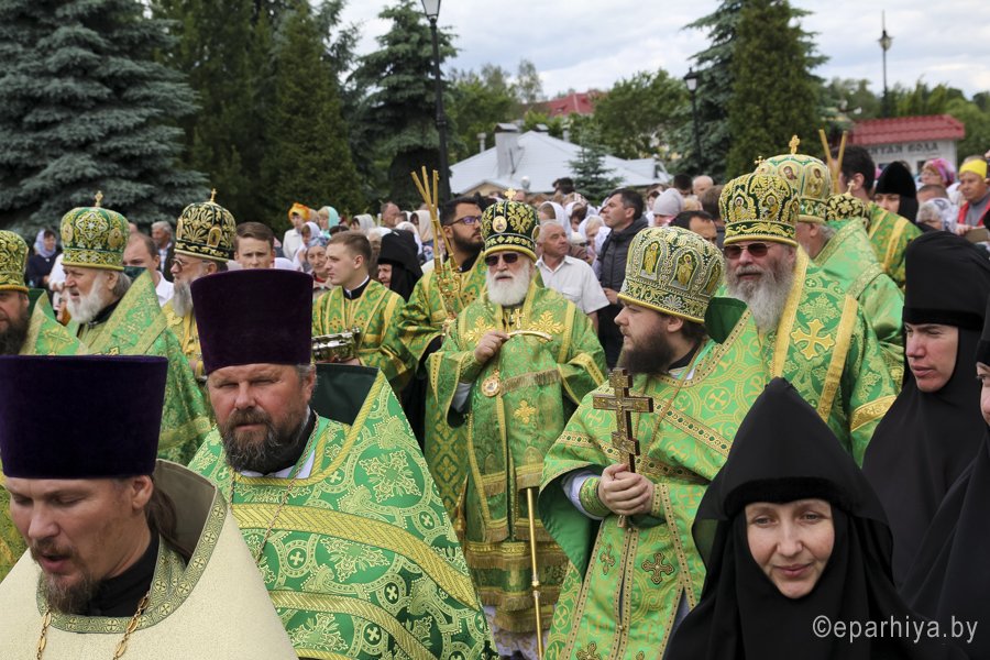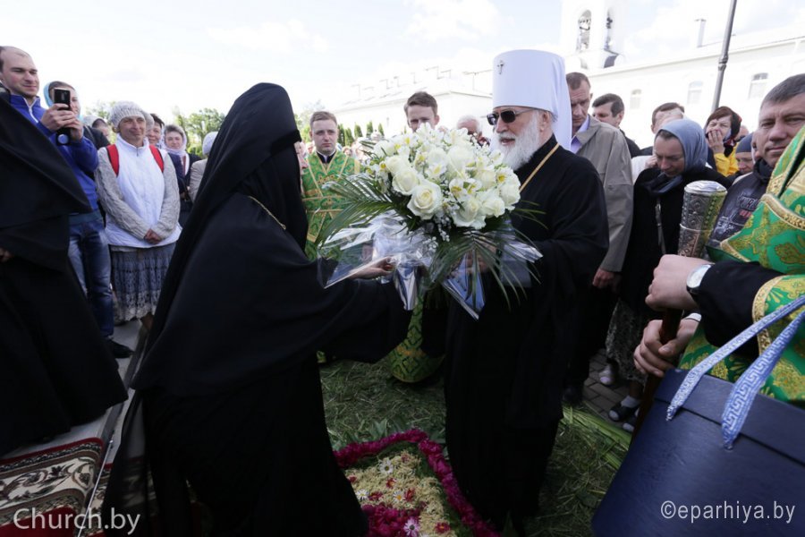 5 июня 2018 года, в праздник преподобной Евфросинии, игумении Полоцкой, Высокопреосвященный Стефан, архиепископ Гомельский и Жлобинский сослужил за Божественной литургией митрополиту Минскому и Заславскому Павлу, Патриаршему Экзарху всея Беларуси. Богослужение совершалось в Крестовоздвиженском соборе Спасо-Евфросиниевского женского монастыря города Полоцка. Его Высокопреосвященству также сослужили: архиепископы Могилевский и Мстиславский Софроний; Брестский и Кобринский Иоанн; Городницкий Александр, викарий Киевской епархии; епископы Молодечненский и Столбцовский Павел; Лидский и Сморгонский Порфирий. Архипастырям сослужили: управляющий делами Минской Экзархии архимандрит Сергий (Брич); секретарь Минской епархии, протоиерей Андрей Волков; клирики монастыря и приглашенные гости в священном сане. Богослужебные песнопения исполнил хор обители под управлением монахини Февронии (Бармичевой). Проповедь перед Причастием произнес клирик Спасо-Евфросиниевского монастыря, протоиерей Иоанн Гаврильчик. По заамвонной молитве архипастыри и сослужащие священнослужители совершили молебен преподобной Евфросинии, игумении Полоцкой. В этот день в Софийском соборе города Полоцка архиепископ Полоцкий и Глубокский Феодосий, епископы Бобруйский и Быховский Серафим и Борисовский и Марьиногорский Вениамин совершили Божественную литургию, по окончании которой прошел крестный ход по городским улицам в Спасо-Евфросиниевский монастырь. В монастыре два крестных хода встретились и проследовали к Спасо-Преображенскому храму монастыря, где завершилось богослужение. После отпуста и праздничного многолетия Патриарший Экзарх поздравил архипастырей, священнослужителей и всех благочестивых паломников и насельниц святой обители с праздником преподобной Евфросинии, игумении Полоцкой, и обратился ко всем присутствующим на монастырской площади со словом назидания. С приветственным словом ко всем пришедшим почтить память преподобной Евфросинии обратились: председатель областного Совета депутатов Витебской области Владимир Владимирович Тереньтев и председатель Полоцкого районного исполнительного комитета Николай Николаевич Шевчук. После богослужения митрополит Павел вместе с игуменией Евдокией посетил Лазарет и поздравил с праздником стариц обители, которые по состоянию здоровья не смогли быть на богослужении. Владыка преподал всем болящим архипастырское благословение, пожелал здоровья и многая лета. |
