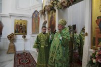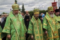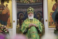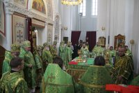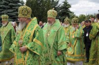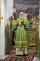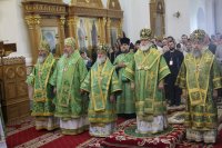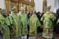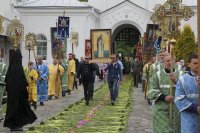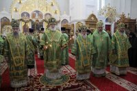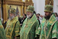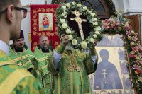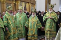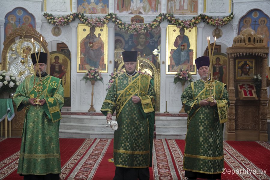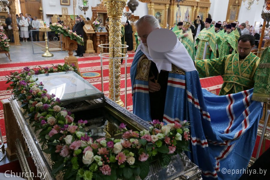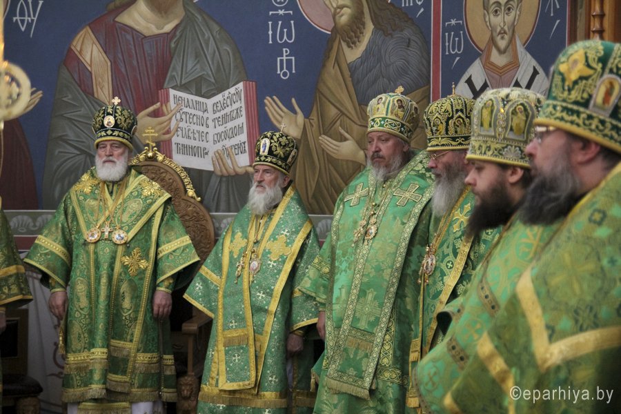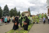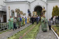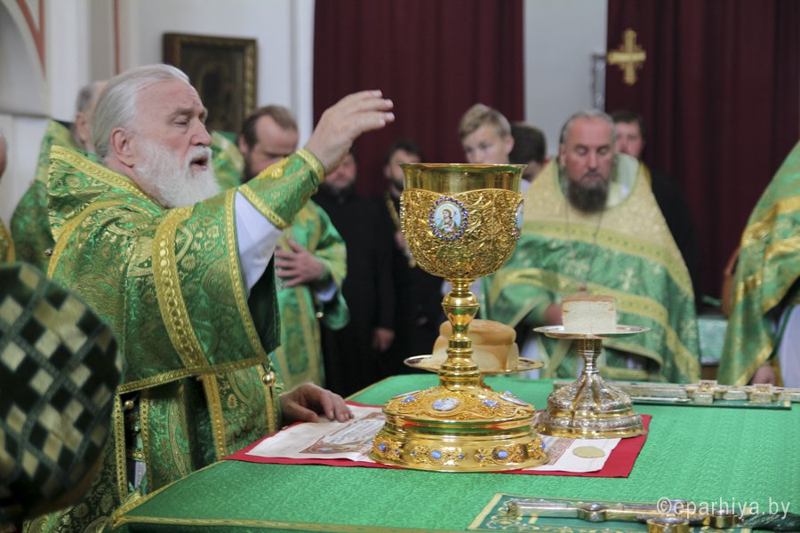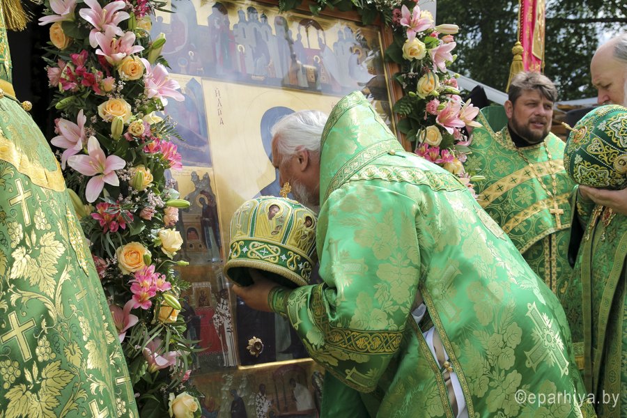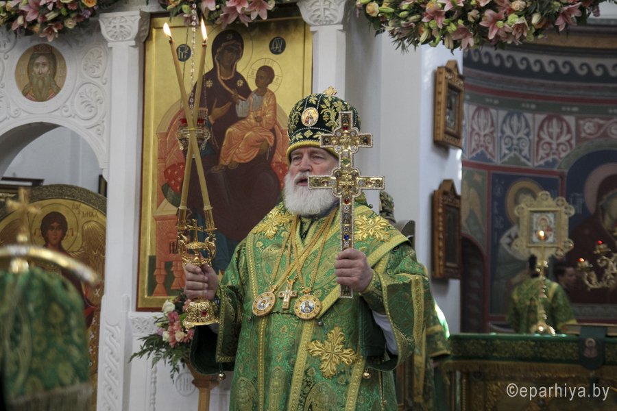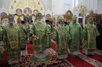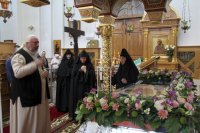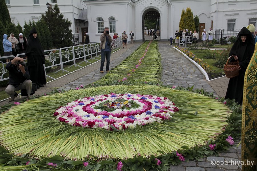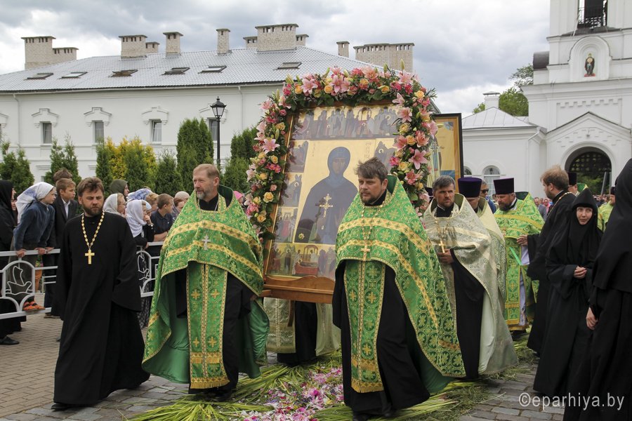 5 июня 2018 года, в праздник преподобной Евфросинии, игумении Полоцкой, Высокопреосвященный Стефан, архиепископ Гомельский и Жлобинский сослужил за Божественной литургией митрополиту Минскому и Заславскому Павлу, Патриаршему Экзарху всея Беларуси. Богослужение совершалось в Крестовоздвиженском соборе Спасо-Евфросиниевского женского монастыря города Полоцка. Его Высокопреосвященству также сослужили: архиепископы Могилевский и Мстиславский Софроний; Брестский и Кобринский Иоанн; Городницкий Александр, викарий Киевской епархии; епископы Молодечненский и Столбцовский Павел; Лидский и Сморгонский Порфирий. Архипастырям сослужили: управляющий делами Минской Экзархии архимандрит Сергий (Брич); секретарь Минской епархии, протоиерей Андрей Волков; клирики монастыря и приглашенные гости в священном сане. Богослужебные песнопения исполнил хор обители под управлением монахини Февронии (Бармичевой). Проповедь перед Причастием произнес клирик Спасо-Евфросиниевского монастыря, протоиерей Иоанн Гаврильчик. По заамвонной молитве архипастыри и сослужащие священнослужители совершили молебен преподобной Евфросинии, игумении Полоцкой. В этот день в Софийском соборе города Полоцка архиепископ Полоцкий и Глубокский Феодосий, епископы Бобруйский и Быховский Серафим и Борисовский и Марьиногорский Вениамин совершили Божественную литургию, по окончании которой прошел крестный ход по городским улицам в Спасо-Евфросиниевский монастырь. В монастыре два крестных хода встретились и проследовали к Спасо-Преображенскому храму монастыря, где завершилось богослужение. После отпуста и праздничного многолетия Патриарший Экзарх поздравил архипастырей, священнослужителей и всех благочестивых паломников и насельниц святой обители с праздником преподобной Евфросинии, игумении Полоцкой, и обратился ко всем присутствующим на монастырской площади со словом назидания. С приветственным словом ко всем пришедшим почтить память преподобной Евфросинии обратились: председатель областного Совета депутатов Витебской области Владимир Владимирович Тереньтев и председатель Полоцкого районного исполнительного комитета Николай Николаевич Шевчук. После богослужения митрополит Павел вместе с игуменией Евдокией посетил Лазарет и поздравил с праздником стариц обители, которые по состоянию здоровья не смогли быть на богослужении. Владыка преподал всем болящим архипастырское благословение, пожелал здоровья и многая лета. |