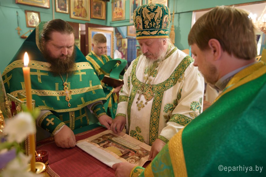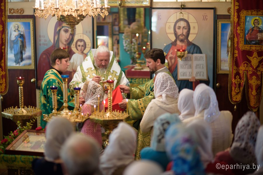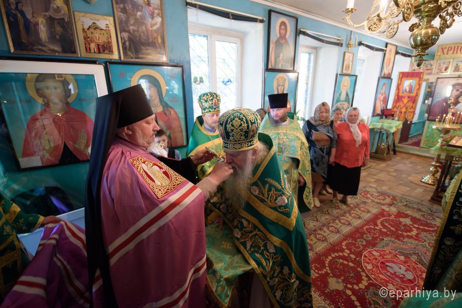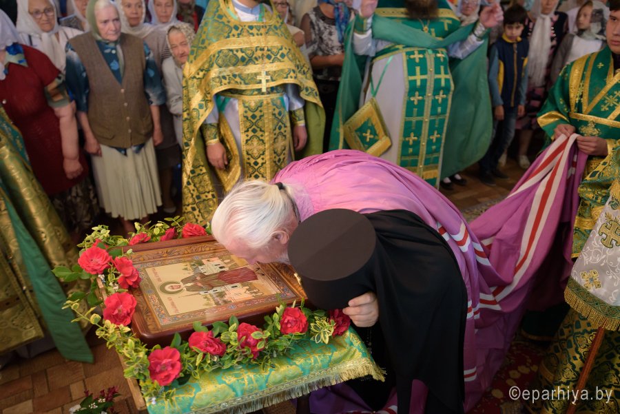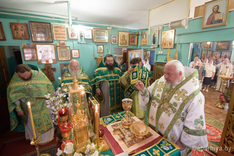 Божественную литургию в день памяти святой блаженной Ксении Петербургской 6 июня 2018г. совершил Высокопреосвященный Стефан, архиепископ Гомельский и Жлобинский в одноименном храме аг.Большевик. Высокопреосвященному сослужили: секретарь Гомельской епархии протоиерей Георгий Алампиев, благочинный монастырей Гомельской епархии архимандрит Амвросий (Шевцов), благочинный Гомельского районного округа протоиерей Артемий Кривицкий, настоятель прихода протоиерей Виктор Ганачков и духовенство округа. По окончании богослужения Владыка возглавил Крестный ход, поздравил причастников с принятием Святых Христовых Таин и раздал всем присутствующим иконки. |