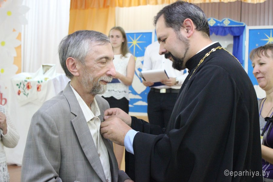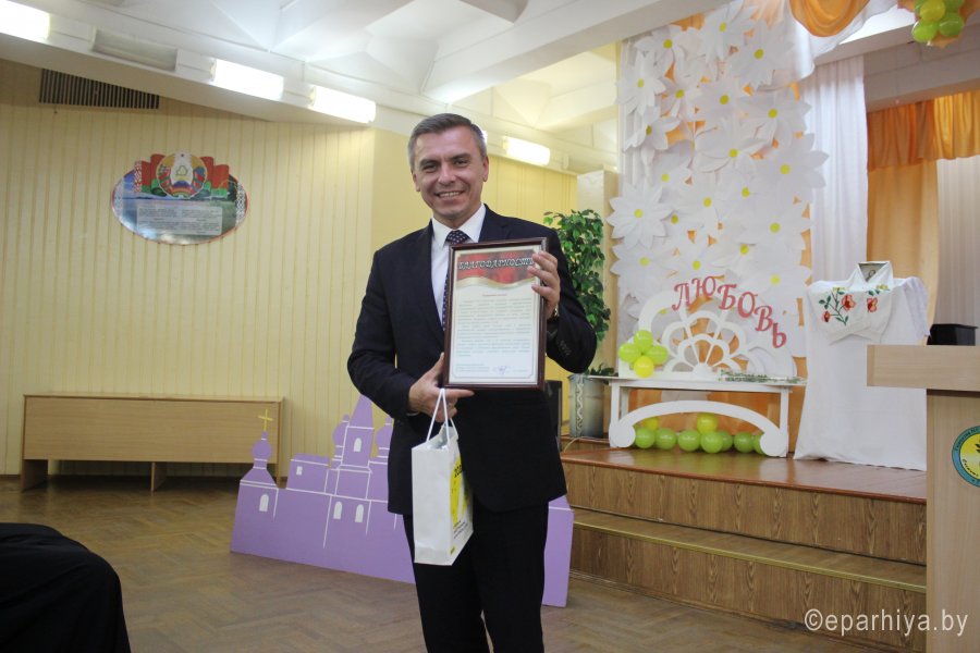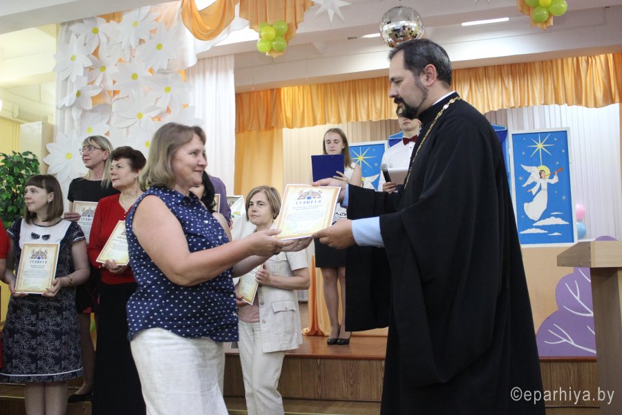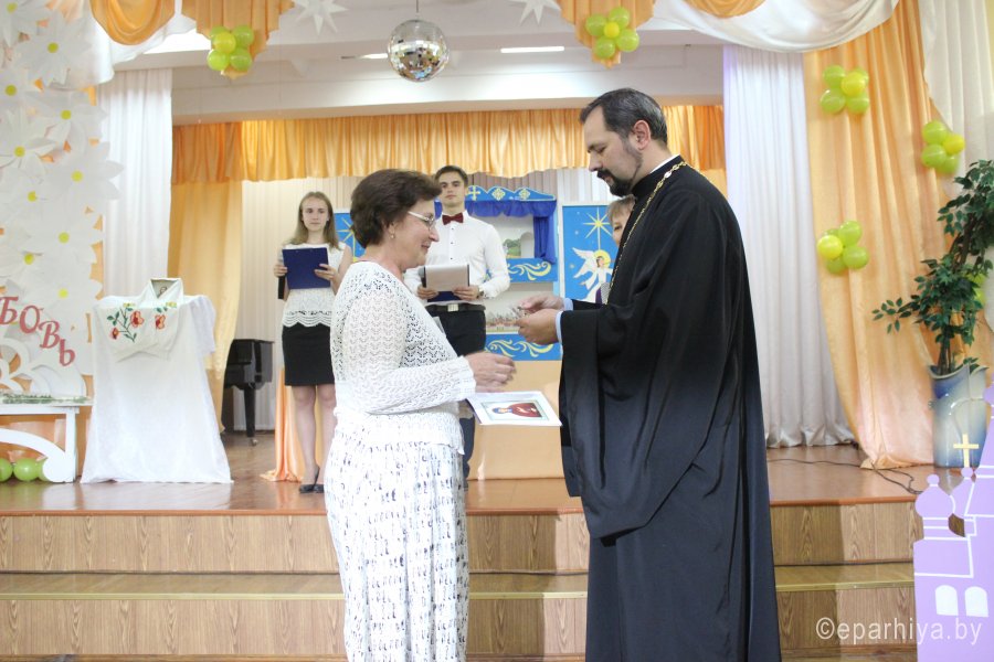 Вот и закончился очередной этап многолетней работы педагогического коллектива ГУО «Гимназии №58 г. Гомеля имени П.Ф. Гааза» по духовно-нравственному воспитанию подрастающего поколения. В этом году выпускаются ребята, которые с первого класса участвуют в инновационном проекте, а это говорит о том, что уже несколько поколений учеников с раннего возраста знакомятся с прекрасным и глубоким миром Православия. В стенах гимназии прошло торжественное окончание республиканского инновационного проекта «Внедрение программ духовно-нравственного воспитания школьников на православных традициях белорусского народа». Среди приглашенных гостей в зале присутствовали председатель отдела религиозного образования и катехизации Гомельской епархии протоиерей Артемий Кривицкий, старший преподаватель кафедры общей и коррекционной педагогики Гомельского областного института развития образования Хорик Т.А., координатор отдела по связям с общественностью Гомельской епархии Жгирова Н.С., настоятель прихода храма св. вмч. и целителя Пантелеимона в г. Гомеле протоиерей Владимир Сулимов. Директор гимназии, Кравченко А.В, в своем выступлении подвел итоги многолетних трудов, а также определил направления дальнейшей работы на ниве духовно-нравственного воспитания. За многолетний труд и высокое профессиональное мастерство в реализации республиканского инновационного проекта Петухов Виктор Иванович был награжден медалью Гомельской епархии св. прав. Иоанна Кормянского, Синеокина Ольга Васильевна награждена медалью Гомельской епархии прпд. Манефы Гомельской. Также в рамках мероприятия более 20 педагогов были отмечены благодарностями и грамотами Гомельской епархии. По окончании своего выступления Хорик Т.А. вручила директору благодарственное письмо от ректора ГОИРО Акуленко В.Л. Ярким завершением церемонии окончания инновационного проекта стал батлеечный спектакль «Сказ о Петре и Февронии». Следует отметить, что педагогический коллектив гимназии не планирует останавливаться и завершать работу в данном направлении и в новом учебном году вступает в новый инновационный проект по духовно-нравственному воспитанию. |